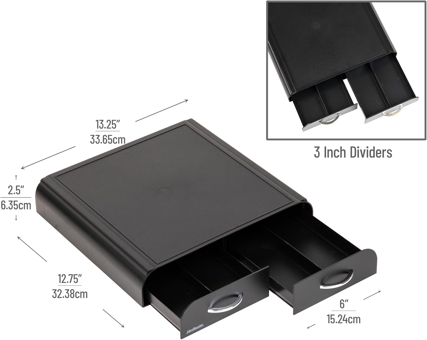 Mind Reader Single Serve Coffee Pod Organizer with 2 Drawers, Compatible with 18 Vertuoline (7.77 fl oz) or 72 Original Nespresso (1.35 fl oz) capsules, Plastic, 13.25"L x 12.75"W x 2.5"H, Black