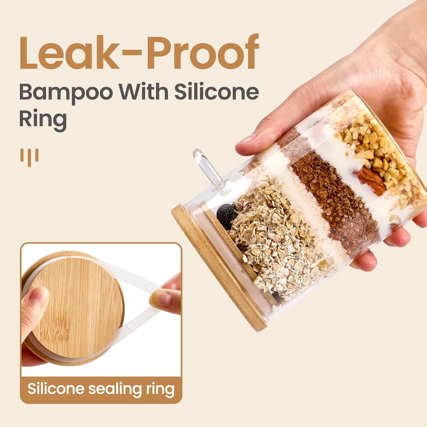- 【Airtight Bamboo Lids】The Overnight Oats Containers with bamboo lids set includes airtight bamboo lids that create a secure seal and protect the contents from moisture, air, and pests. The natural bamboo lids add a touch of elegance to your kitchen decor.