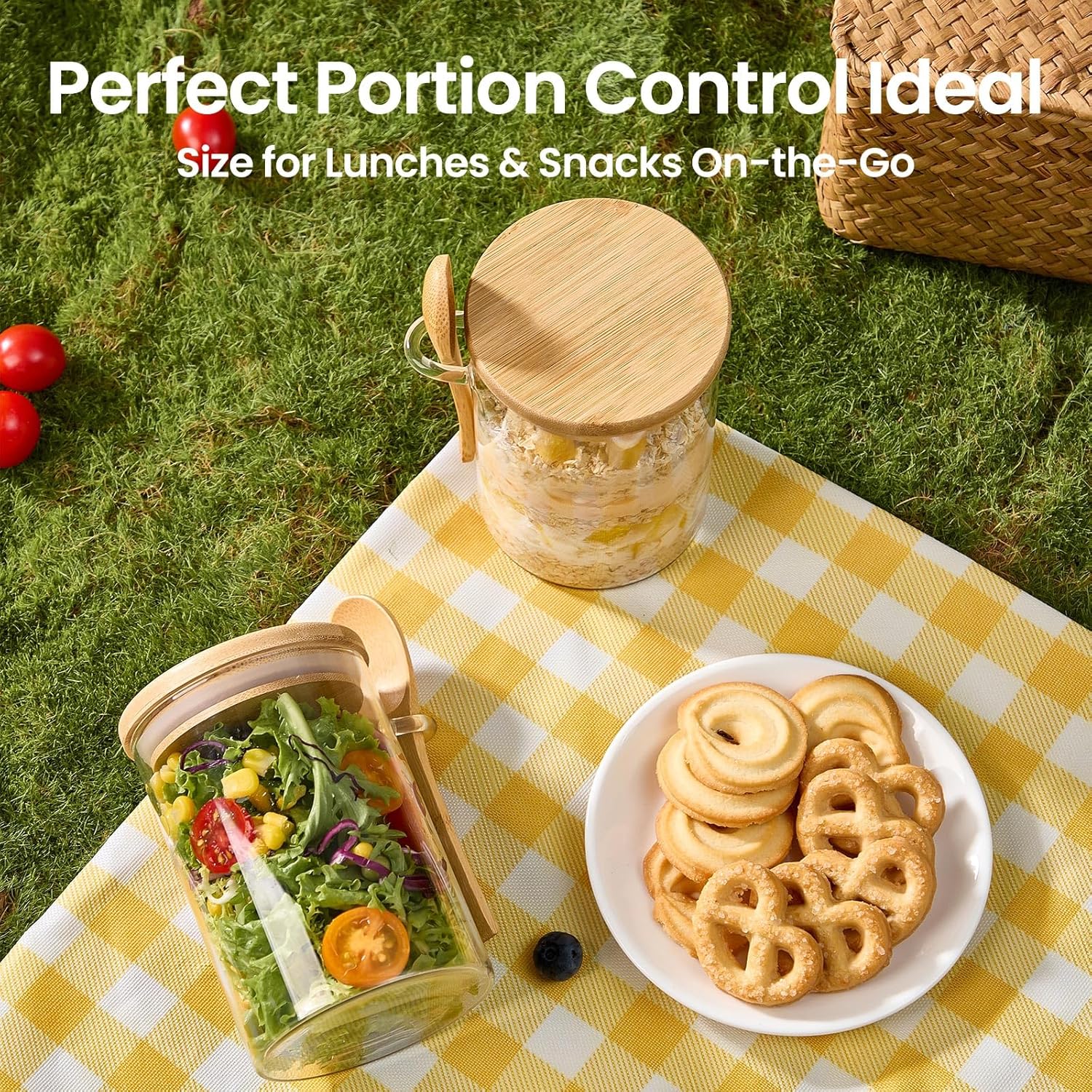 - 【Convenient Spoon Attachment】Each Overnight Oats Glass Containers with Lids and Spoons is equipped with a handy bamboo spoon that is attached to the lid, making it easy to scoop and serve your desired amount of contents. No need to search for a separate spoon.