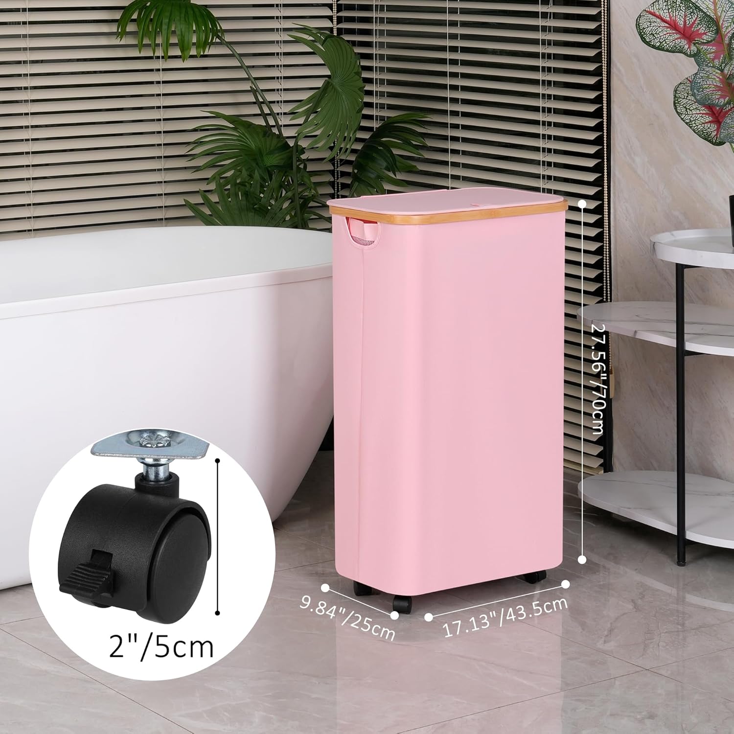 75L Laundry Basket with Wheels,Clothes Hamper for Laundry,Laundry Hamper with Lid and Inner Bag, for Laundry Room, Bedroom, Dormitory Storage,Pink