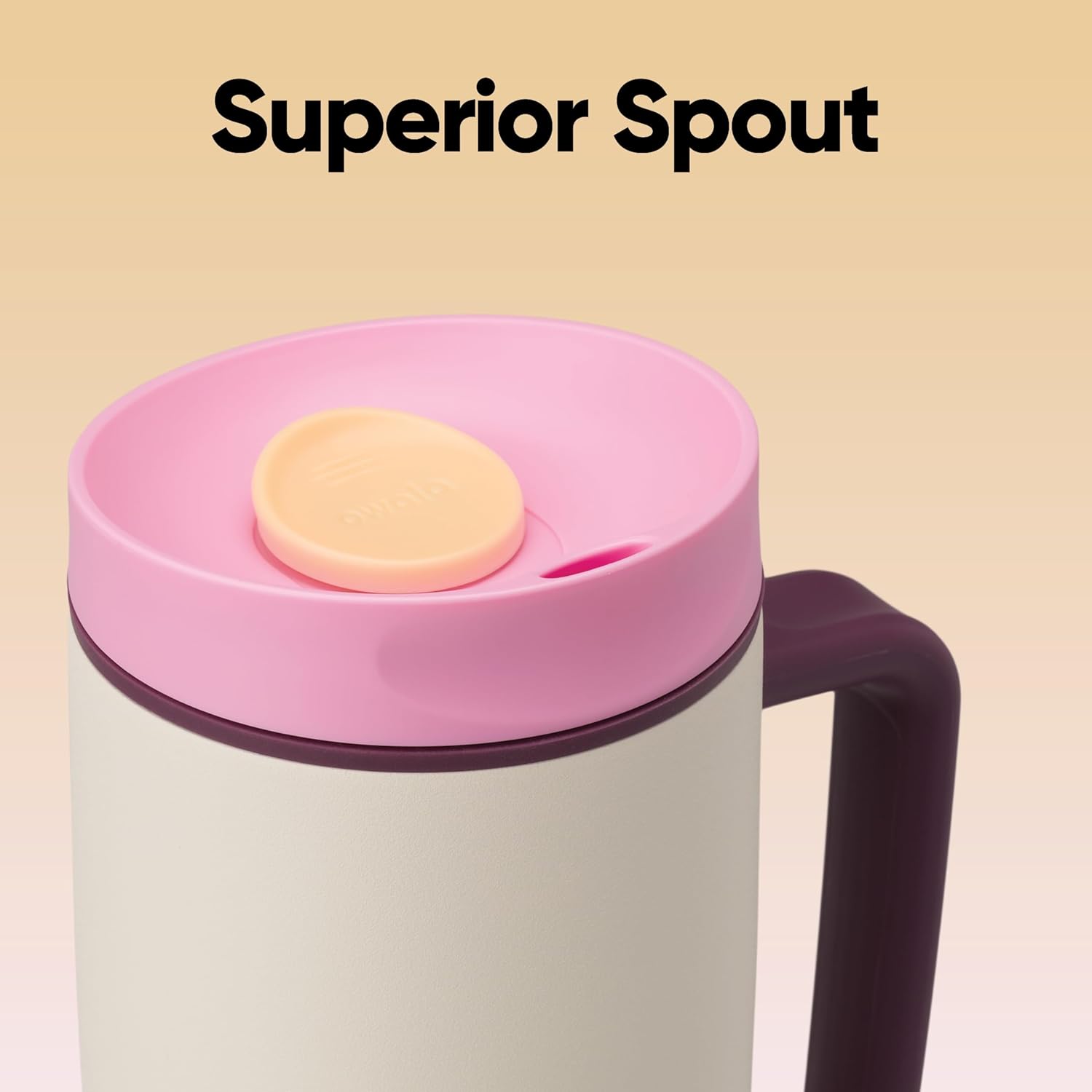 Owala SmoothSip Slider Stainless Steel Insulated Travel Mug, 100% Leak Proof, For Hot and Cold Drinks, Travel Friendly with Sliding Lock Lid, 24 oz, BPA Free, Leak Proof, Pink/Tan (Daybreak)