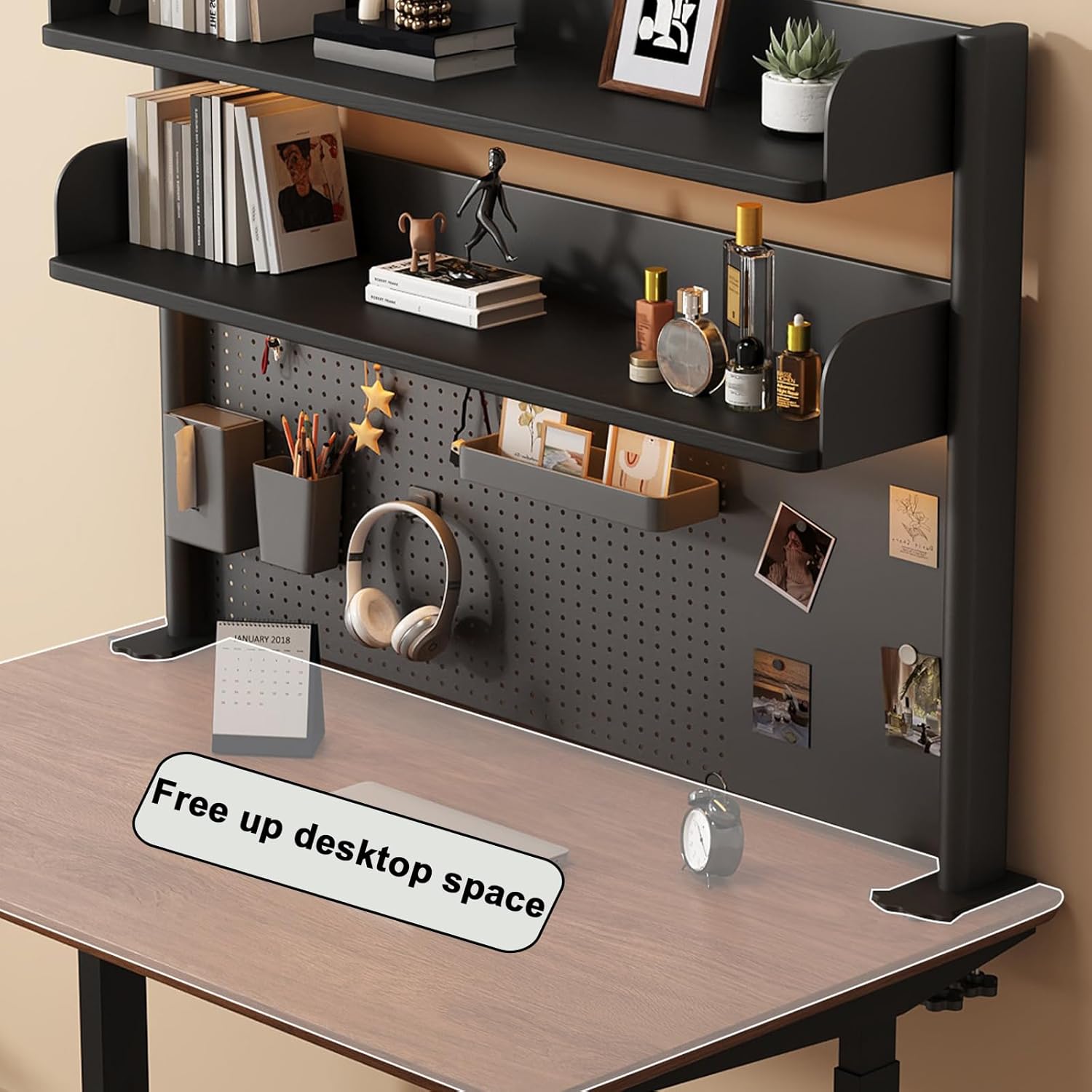 - 【Desk Pegboard With Hook and Storage Box】 - The unique pegboard design is the ideal storage and display area for small items.you are free to DIY your desk. We provide 、hooks、 storage boxes、magnetic clasps so that you can hang keys, headphones, collectibles and other small items, and also display cards, photos and decorations