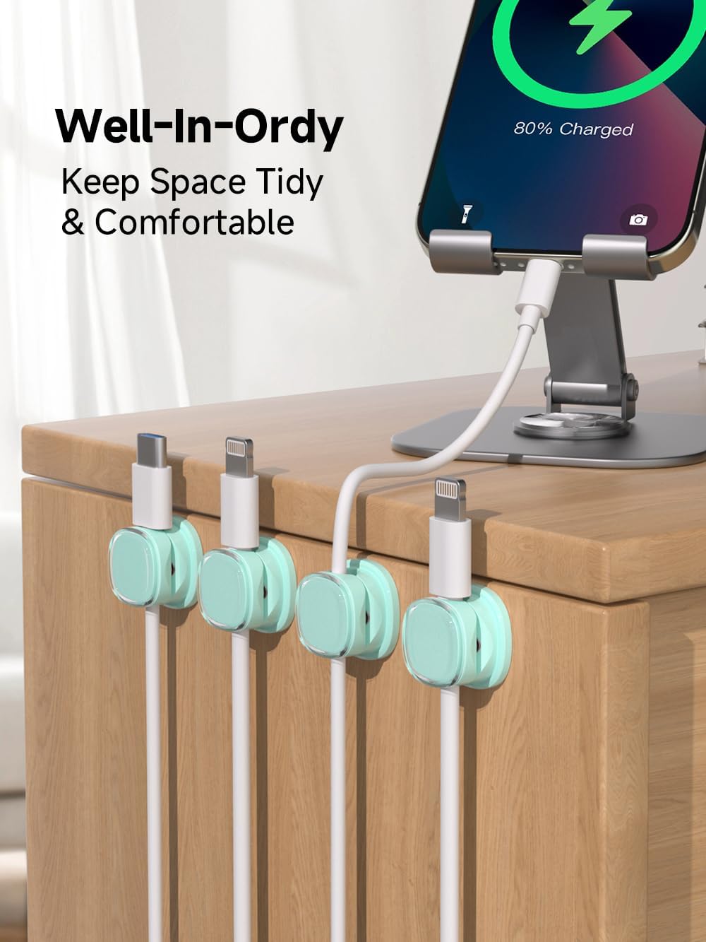 Magnetic Cable Clips, Adjustable Cord Holder Management, Adhesive Wire Keeper Organizer for Home Office Desk Phone PC Car Wall Desktop Nightstand Appliance (9-PCS Cyan)