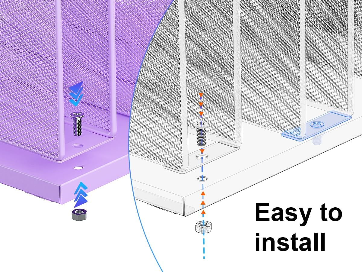 - 【Heavy-Duty Steel Frame】Engineered for durability, this folder organizer features a reinforced alloy steel base and a top-mounted vertical sorter for rock-solid stability. The non-slip scratch guards on the bottom protect your desk surface while keeping documents securely organized.
