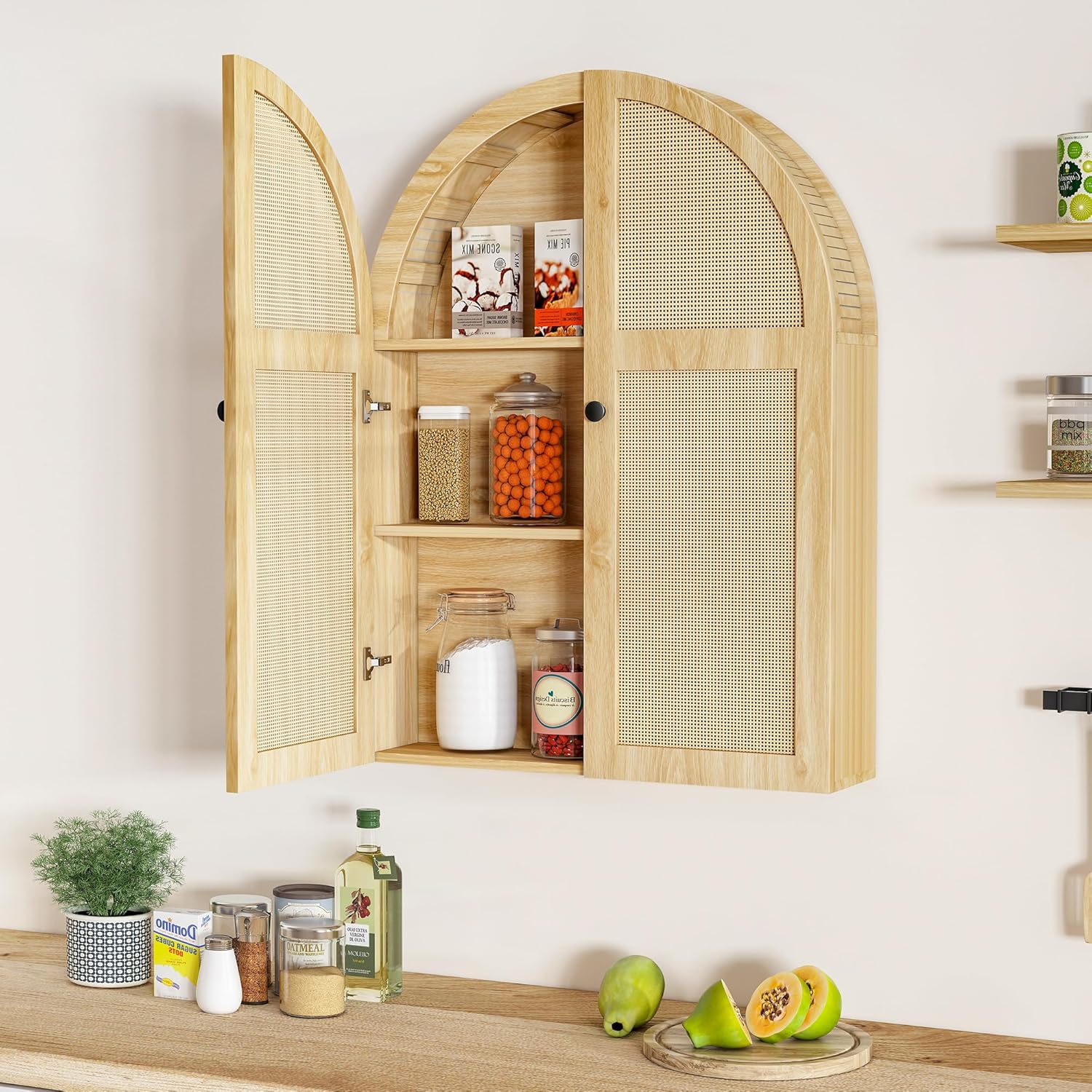Turtle Myrtle Bathroom Medicine Cabinet Wall Mounted, Arched Wall Cabinet with Adjustable Shelf & Doors, Floating Cabinet for Wall Over The Toilet Storage Cabinet Space Saver,Natural