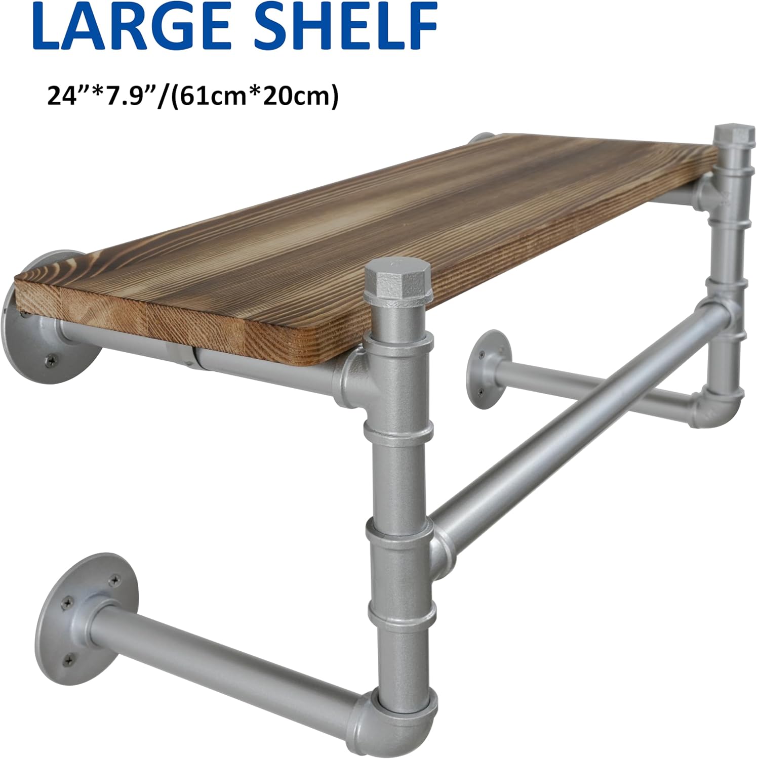 - 【Solid Wood Plank】:Unlike others' wood planks were spliced with nails,our solid wood plank is more sturdy and substantial.Wood shelf size:24"(L) x 7.9"(W) Thickness:20 mm.Heavy duty wall mount Clothes Rack with shelf for hanging clothes.
