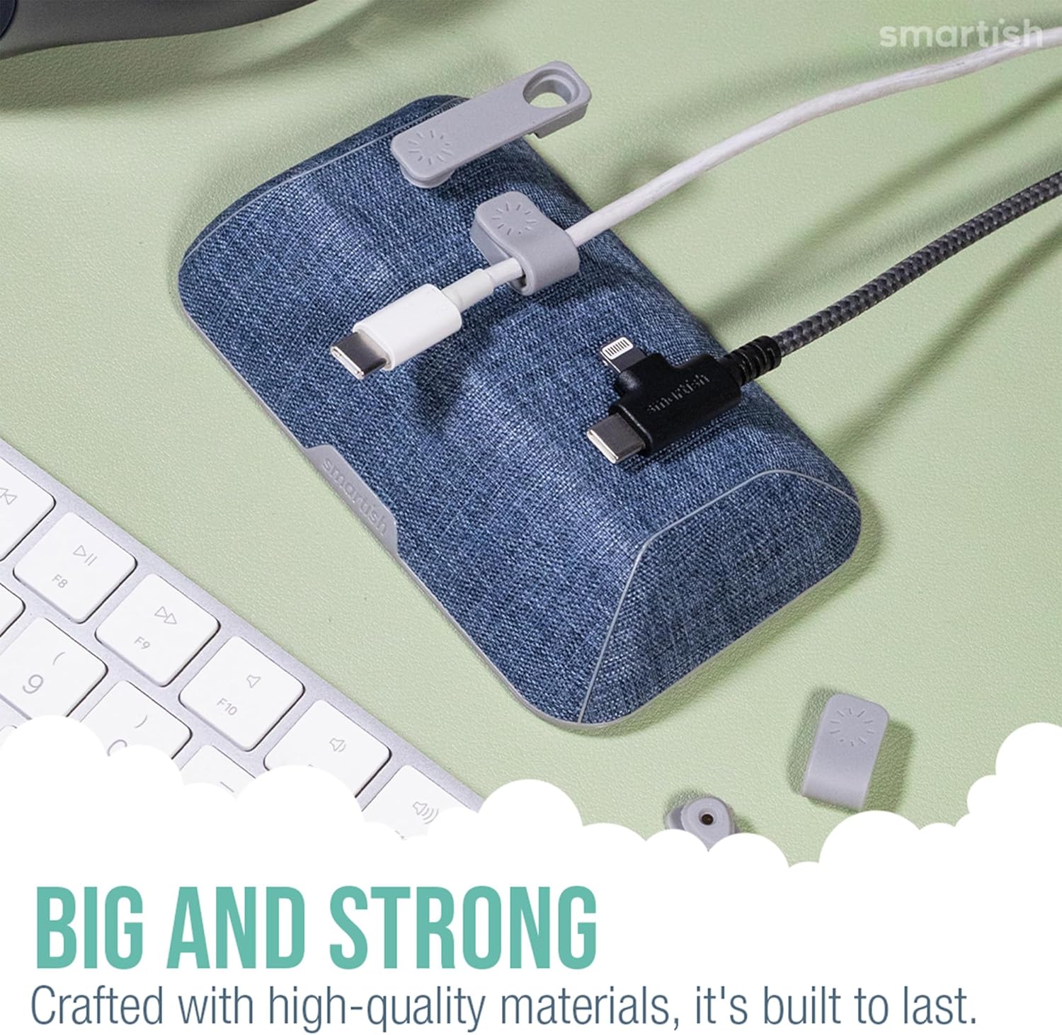 Smartish® Magnetic Cord Holder - Bigger Cable Wrangler Organizer with Magnet Clips for Charger Management on Desktop, Nightstand, or Side Table - Holds 6+ Cables - Blue Jeanie