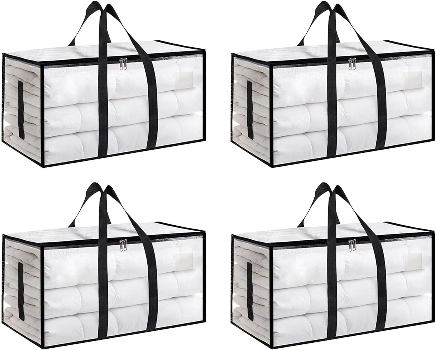 4 Pack-Extra Large Heavy Duty Moving Bags - Waterproof Storage Totes with Handles & Zippers, Foldable for College Dorm, Storage (Clear)
