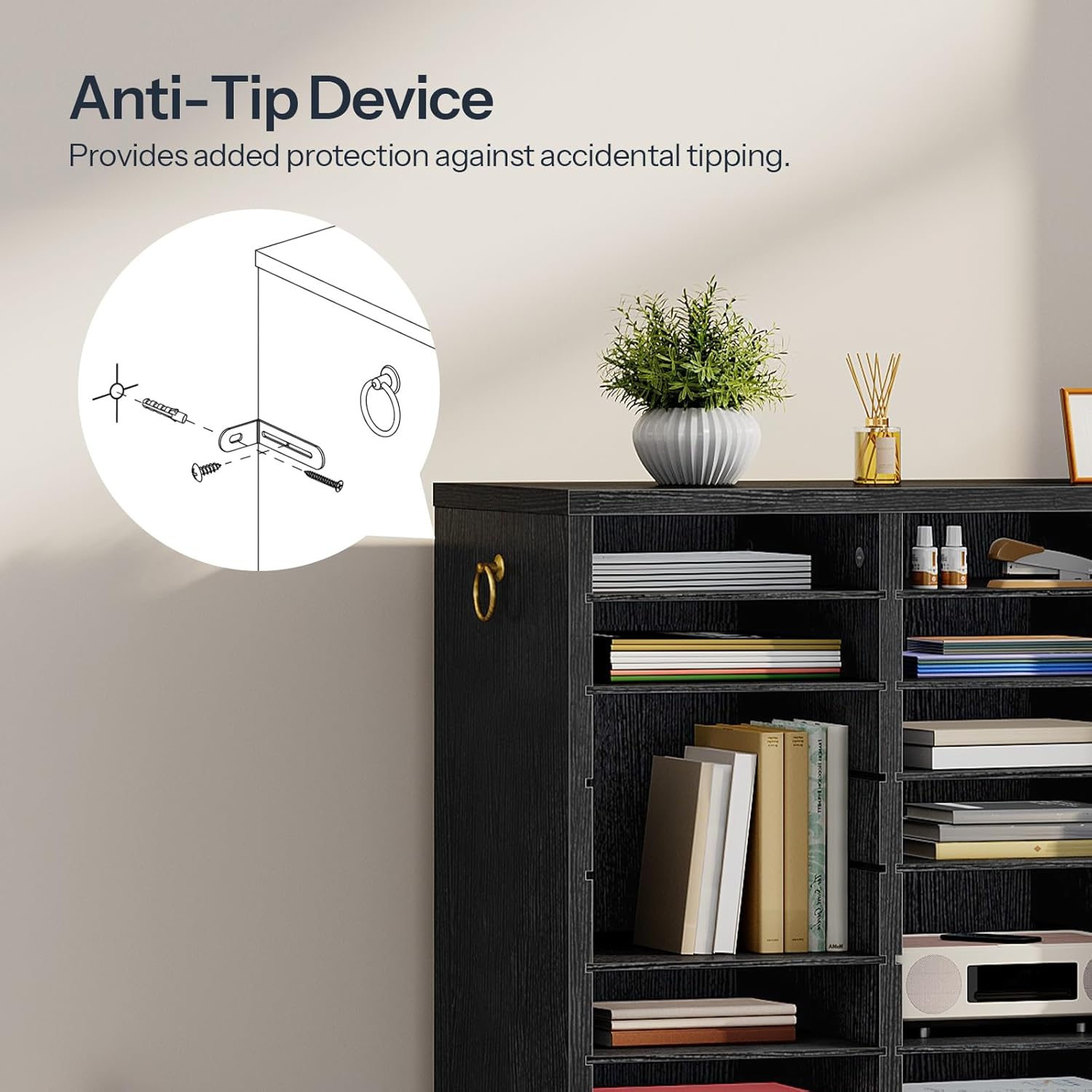 HOOBRO Literature Organizer, 48 Compartments Wooden Mail Organizer, Countertop Literature Sorter with Adjustable Shelves for Home, Office, School, Student Mailbox for Classroom, Black BK163WF01