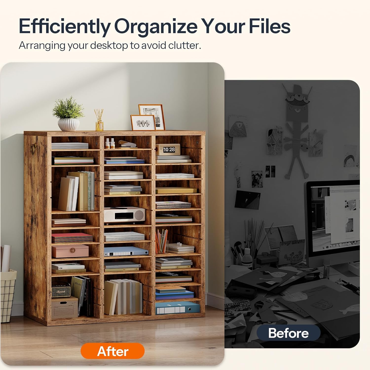 HOOBRO Literature Organizer, 36Compartments Wooden Mail Organizer, Countertop Literature Sorter with Adjustable Shelves for Home, Office, School, Student Mailbox for Classroom, Rustic Brown FG123WF01