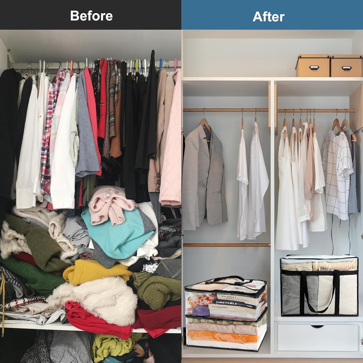 4Pack Clear Blanket Storage Bags, Vinyl Comforter Clothes Storage Closet Organizers and Storage Containers Moving Bags with Reinforced Handle for Bedding, Clothing, Comforters, Pillows, Toys,60L