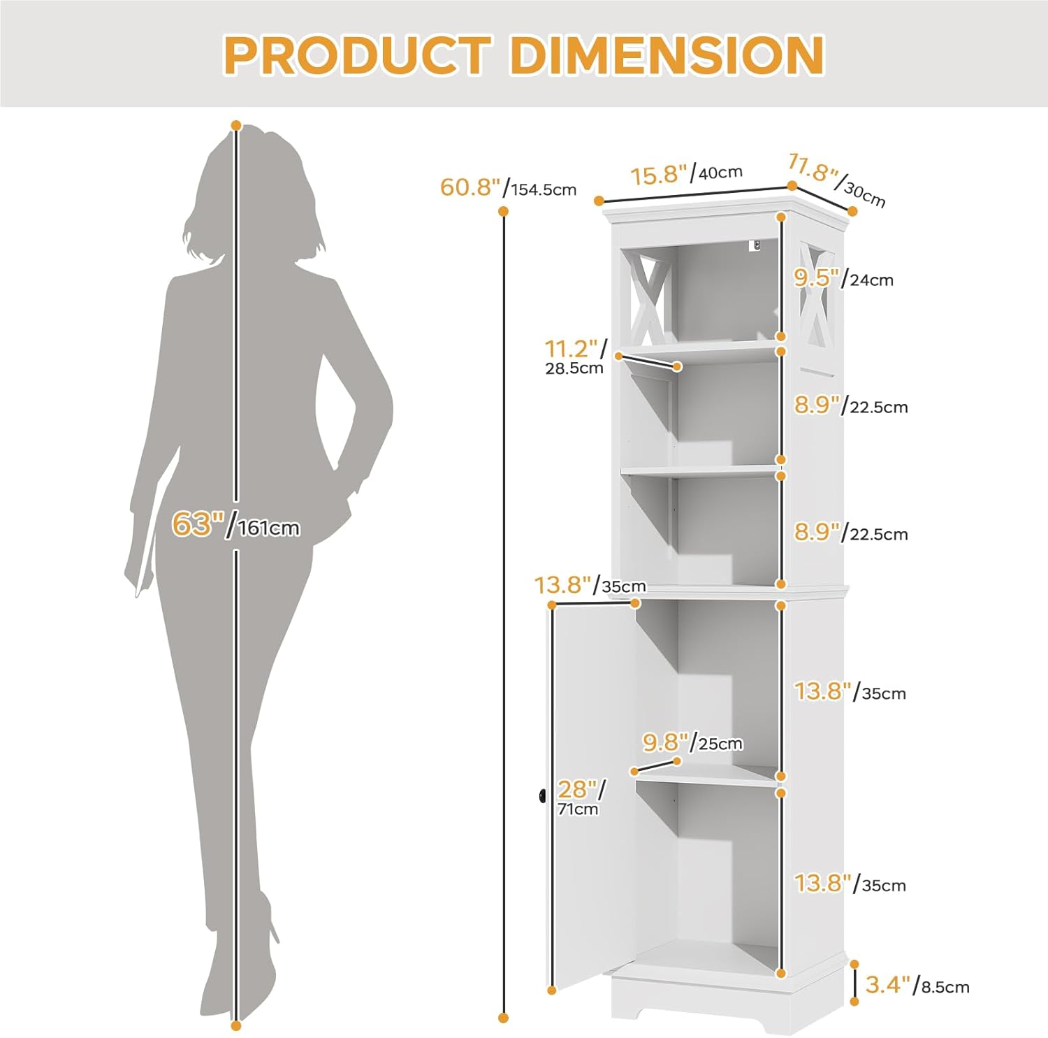 - Compact Yet Spacious-Measuring 11.9"D x 15.9"W x 60.9"H, this slim cabinet maximizes vertical space while taking up minimal floor area—perfect for small bathrooms, kitchens, or entryways. It 's recommended that two or more people install this cabinet.