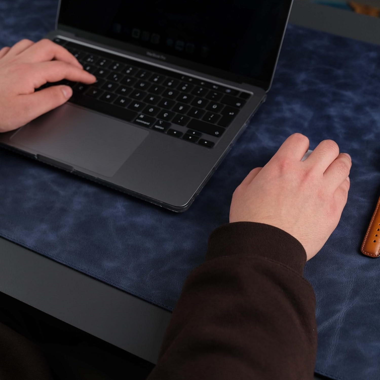 Jersey Genuine Calfskin Leather Desk Pad, Office Desk Mat with Non-Slip Bottom, Smooth Surface for Mouse & Keyboard, Desk Protector (36x19 inches) (Navy)