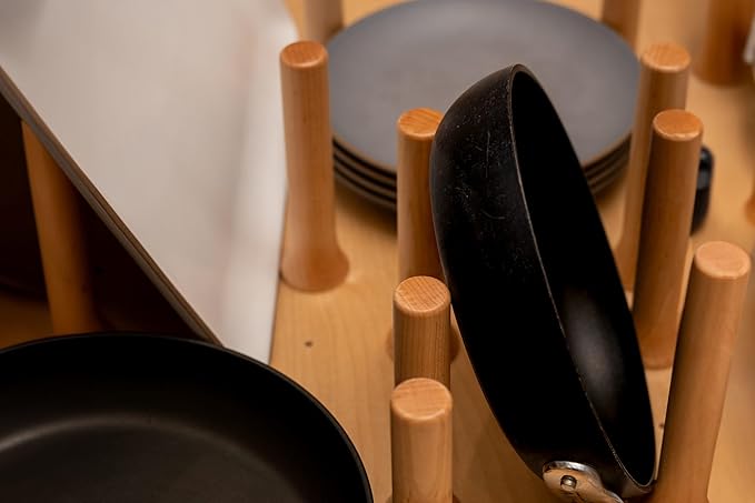 Custom Pegboard Drawer Organizer – Maple Wood – Deep Drawer Insert, Divider for Pots, Pans, Lids & Trays - Kitchen Cabinet Storage - No Cutting or Tools Needed – Made in USA