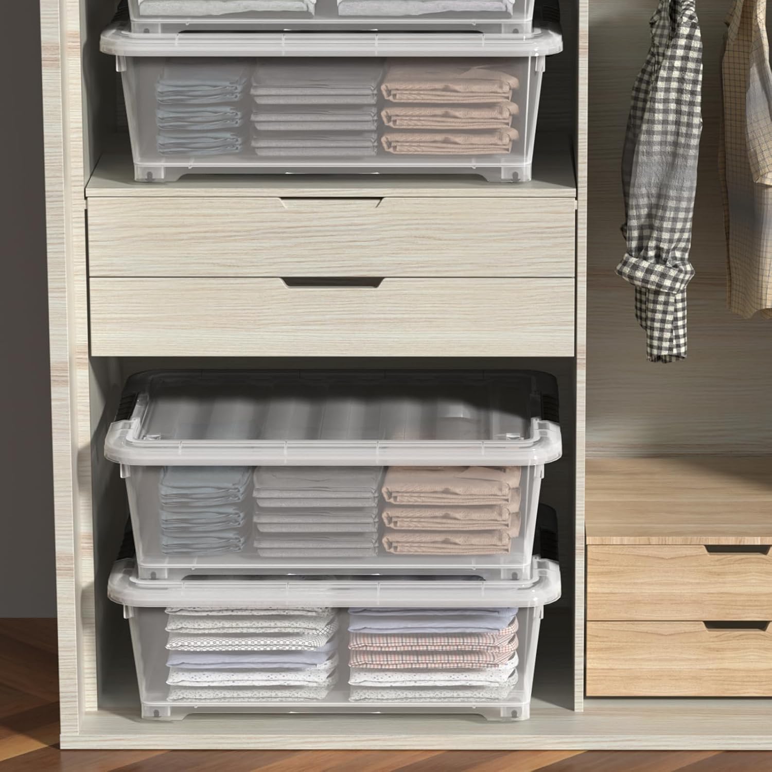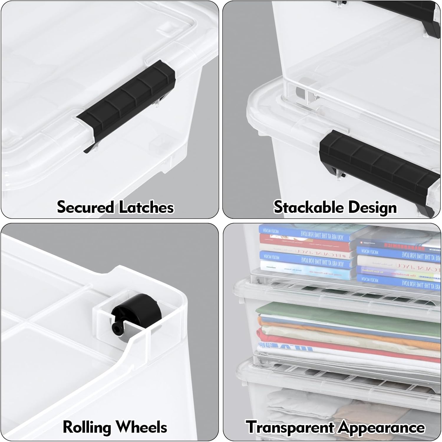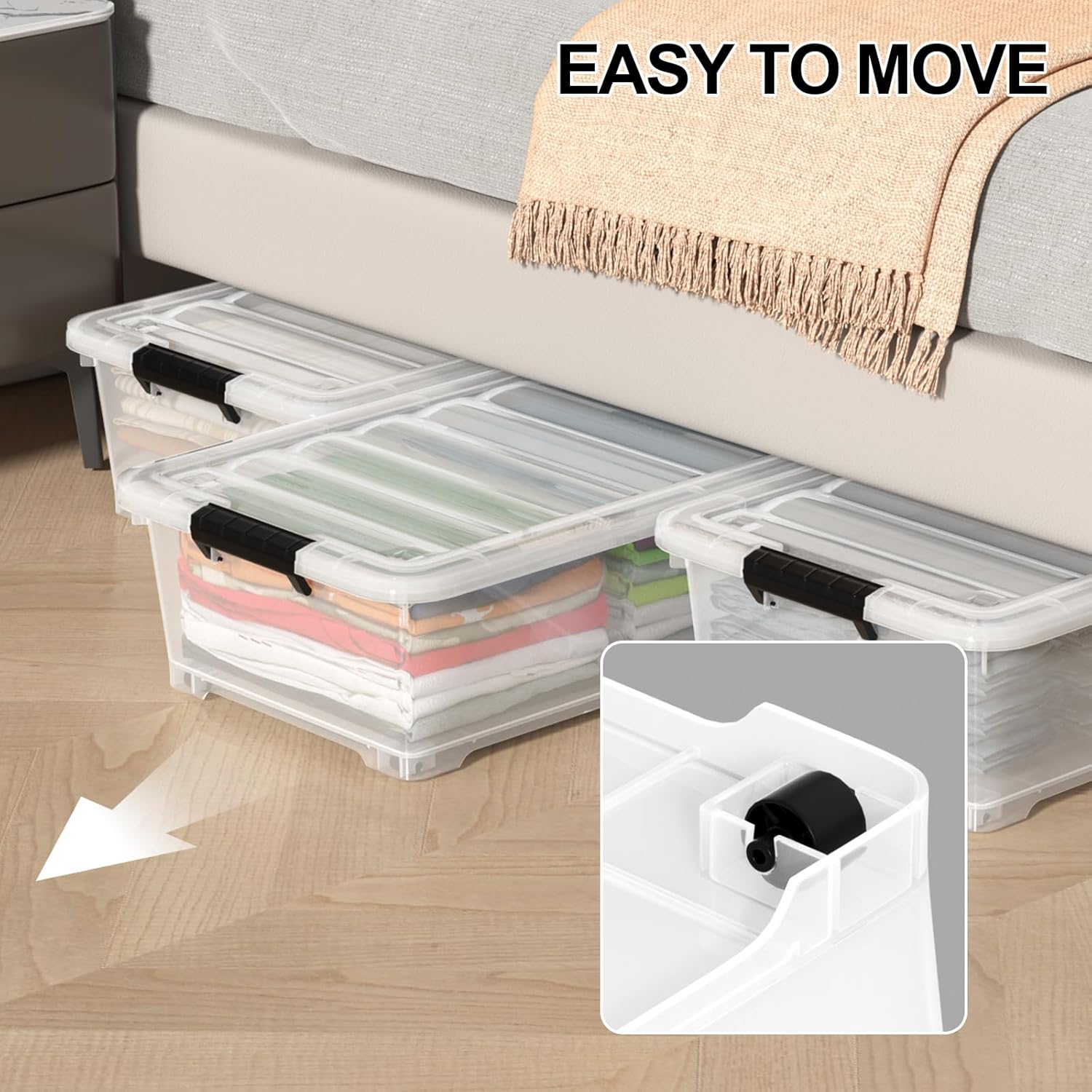 4 Packs 20 Quarts Under Bed Plastic Storage Bins with Lids, Clear Underbed Storage Containers with Wheels