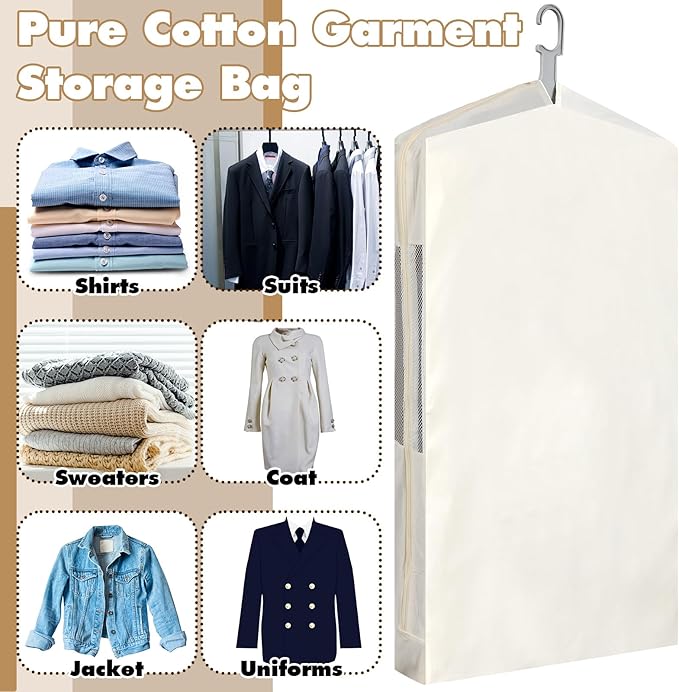 - Pure Cotton Fabric: each clothing bag is made of soft long staple organic cotton, with exquisite rolled edges and all internal seams completed, protecting from moisture, light, and dust, the sturdy design ensures long-lasting use, providing reliable storage for your clothing