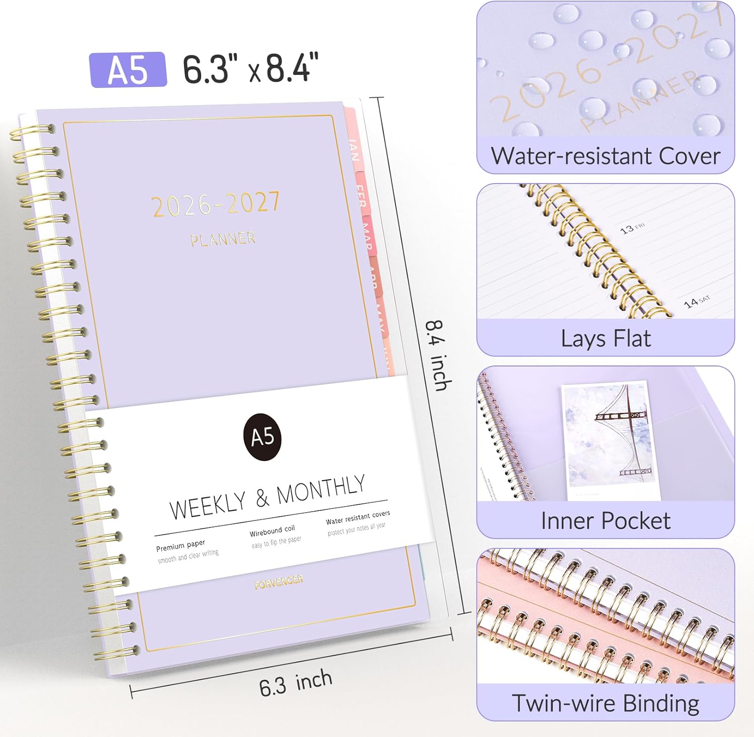 Forvencer Planner 2026-2027, 17 Month Weekly and Monthly Calendar Planner, Jan 2026 -May 2027, 6.3" x 8.4", Daily Agenda Book with Tabs, College Organizer Notebook, School Supplies for Student Teacher Classroom, A5, Black