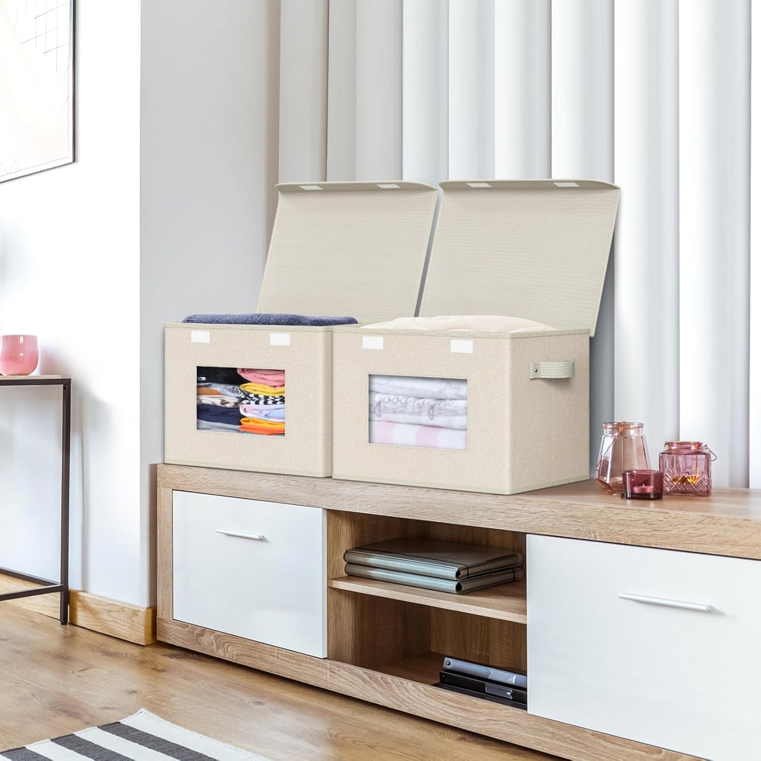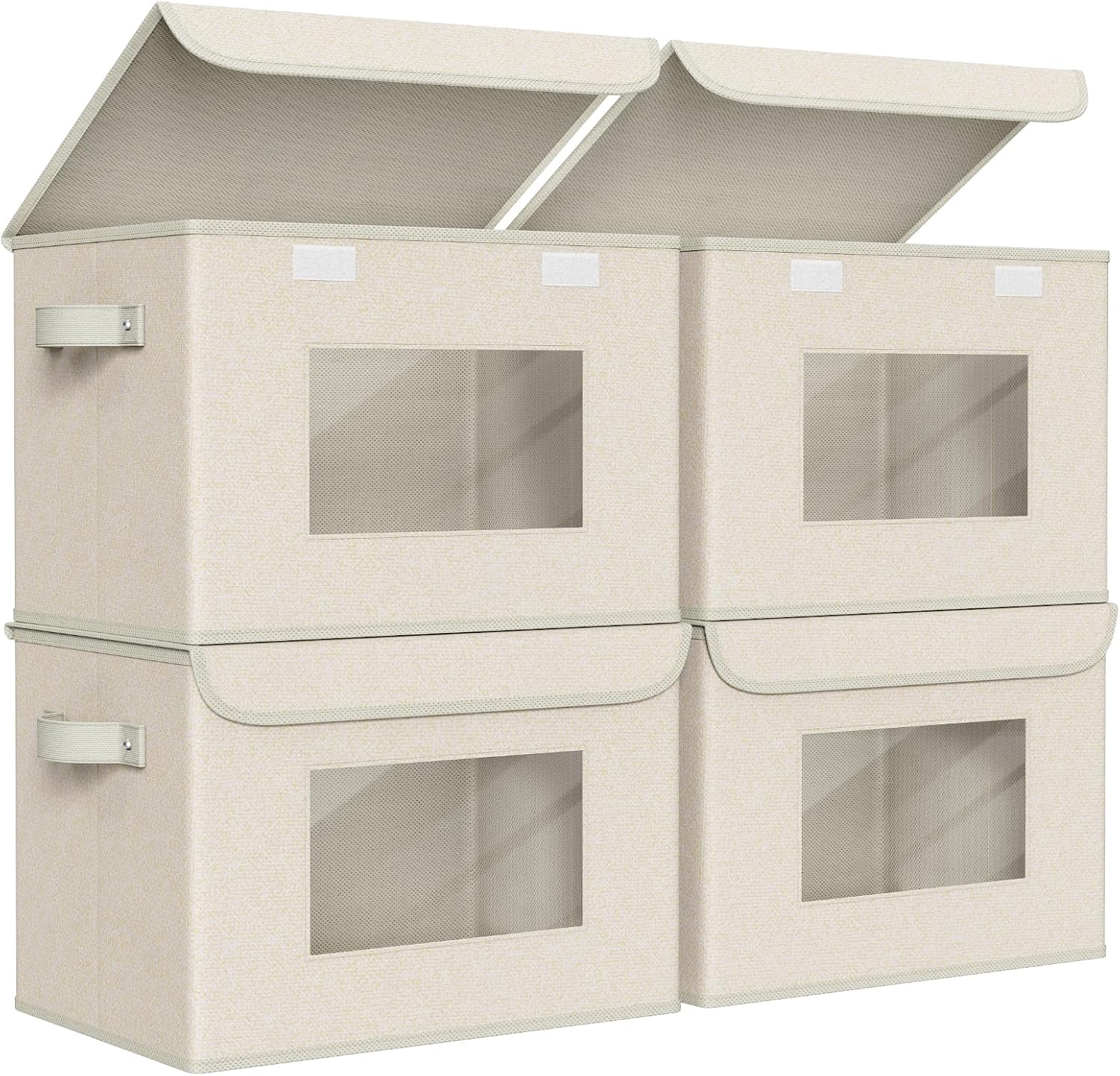 Univivi Collapsible Stackable Storage Bins with Lids [4-Pack] Foldable Fabric Closet Organizer Basket, Closet Organizers and Storage Cube Storage Bin for Home, Office, Bedroom (Beige, 17“ x 12” x 12")