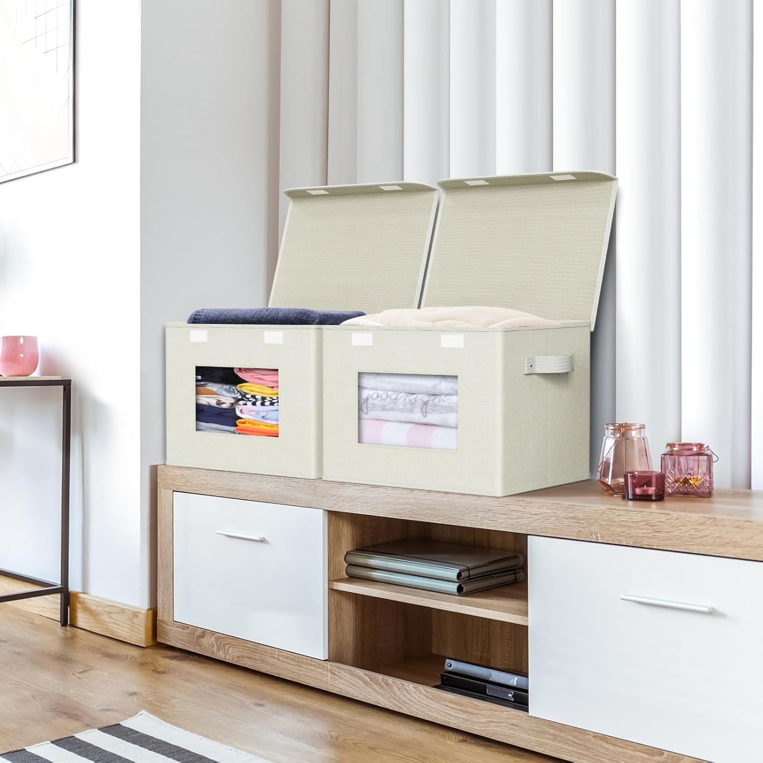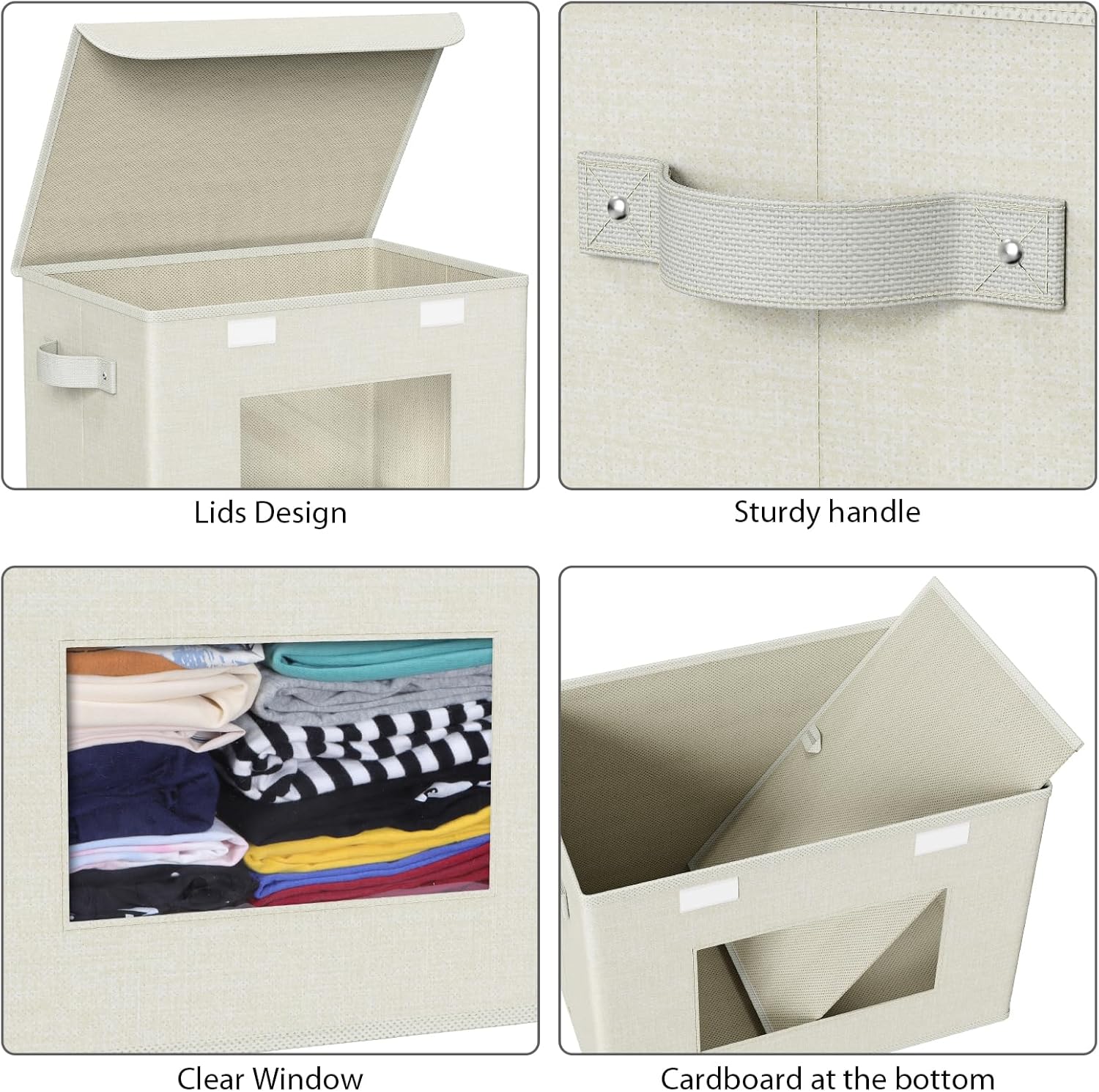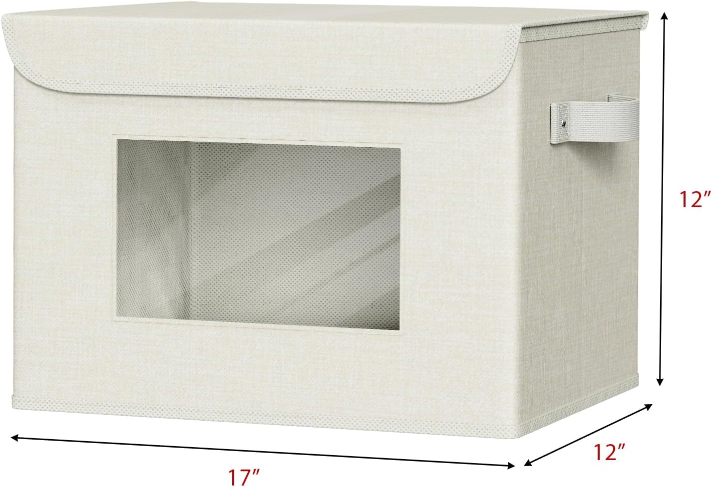 Univivi Fabric Foldable Storage Boxes with Lids [4-Pack] Collapsible Storage Bins for Clothes Closet Organizers with Handles Storage Cube Basket for Home, Office, Bedroom (Beige, 17"" x 12"" x 12"")