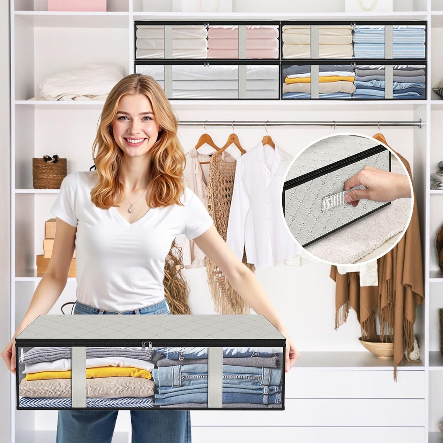 StorageRight Under Bed Storage Bins, 4-Pack 40L Foldable Fabric Storage Bags with Transparent Window, Breathable Organizer for Clothes/Blanket/Comforter/Quilt, White