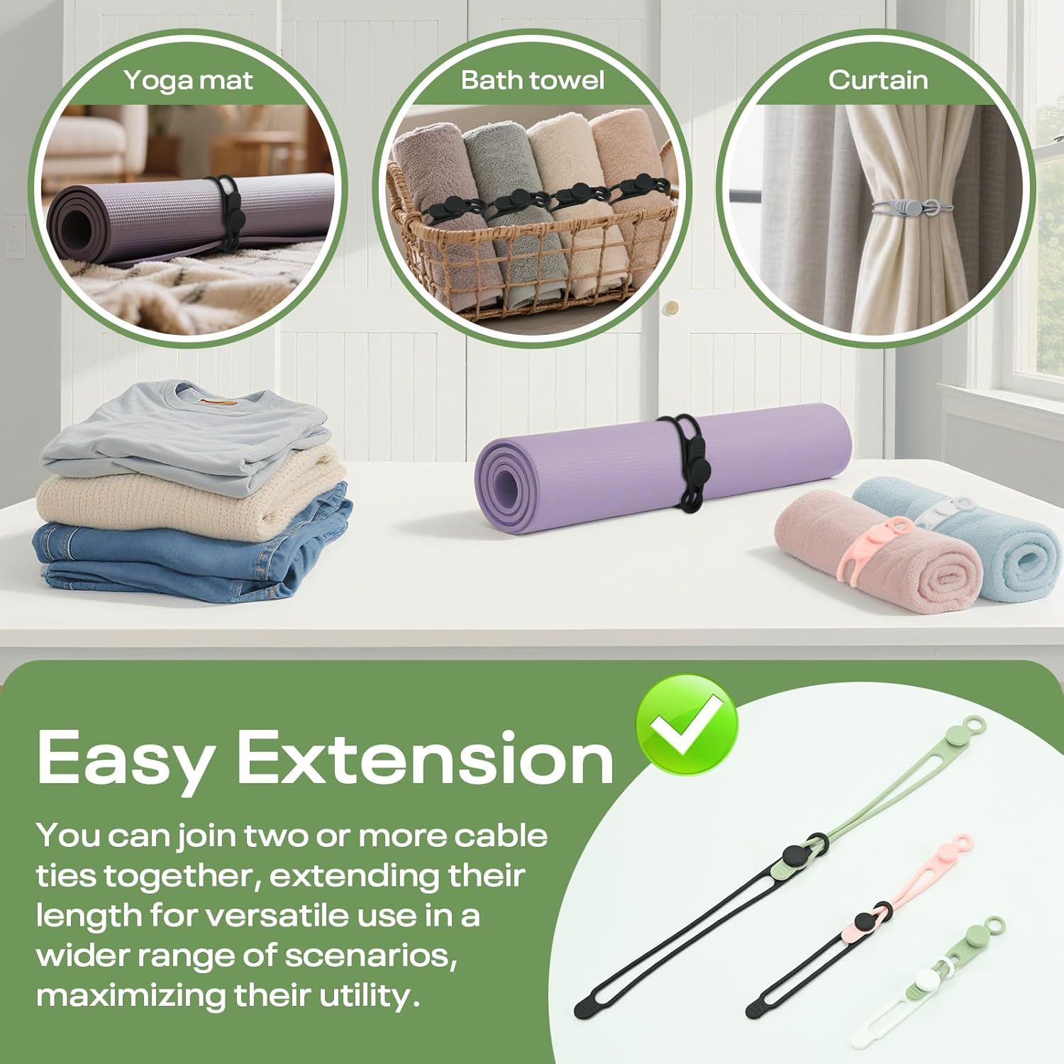 - Reusable to Use:The button-style closure allows for quick fastening and release, the Cable Ties For Cords effortlessly reusable. its washable and maintain their shape over time.Unlike single-use zip ties or deteriorating rubber bands, these Silicone Cord Ties are washable, maintain their shape over time.