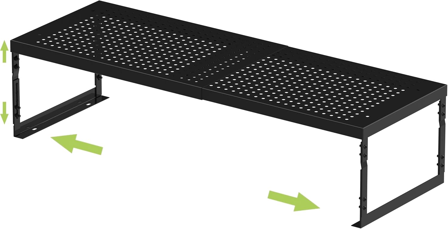 - Stackable & Expandable Flexibility: This metal shelf features an adjustable height ranging from 6.7 inches to 8.6 inches and a width that can be extended from 15.95 inches to 27.2 inches. This adaptability allows it to fit perfectly into various spaces. Moreover, multiple units can be stacked vertically, significantly increasing your storage capacity and making the most of available room.