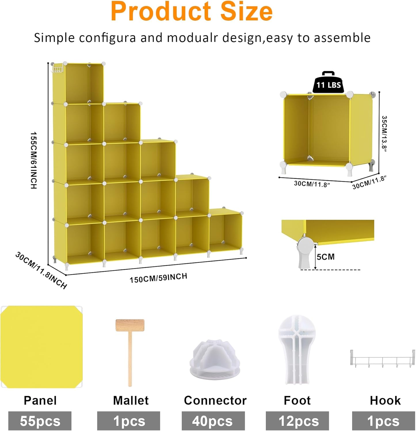 AWTATOS Cube Storage Organizer, Storage Cubes Shelves, 16 Cube Closet Organizers and Storage, DIY Stackable Bookshelf Plastic Clothes Organizer Shelving for Bedroom, Home, Yellow