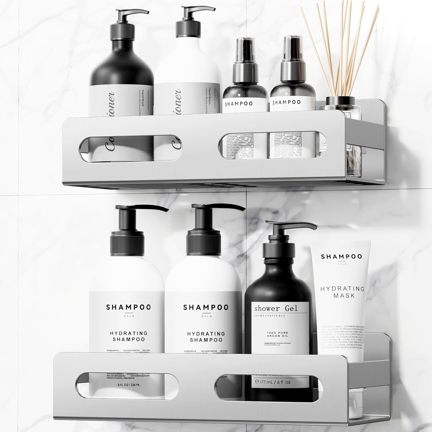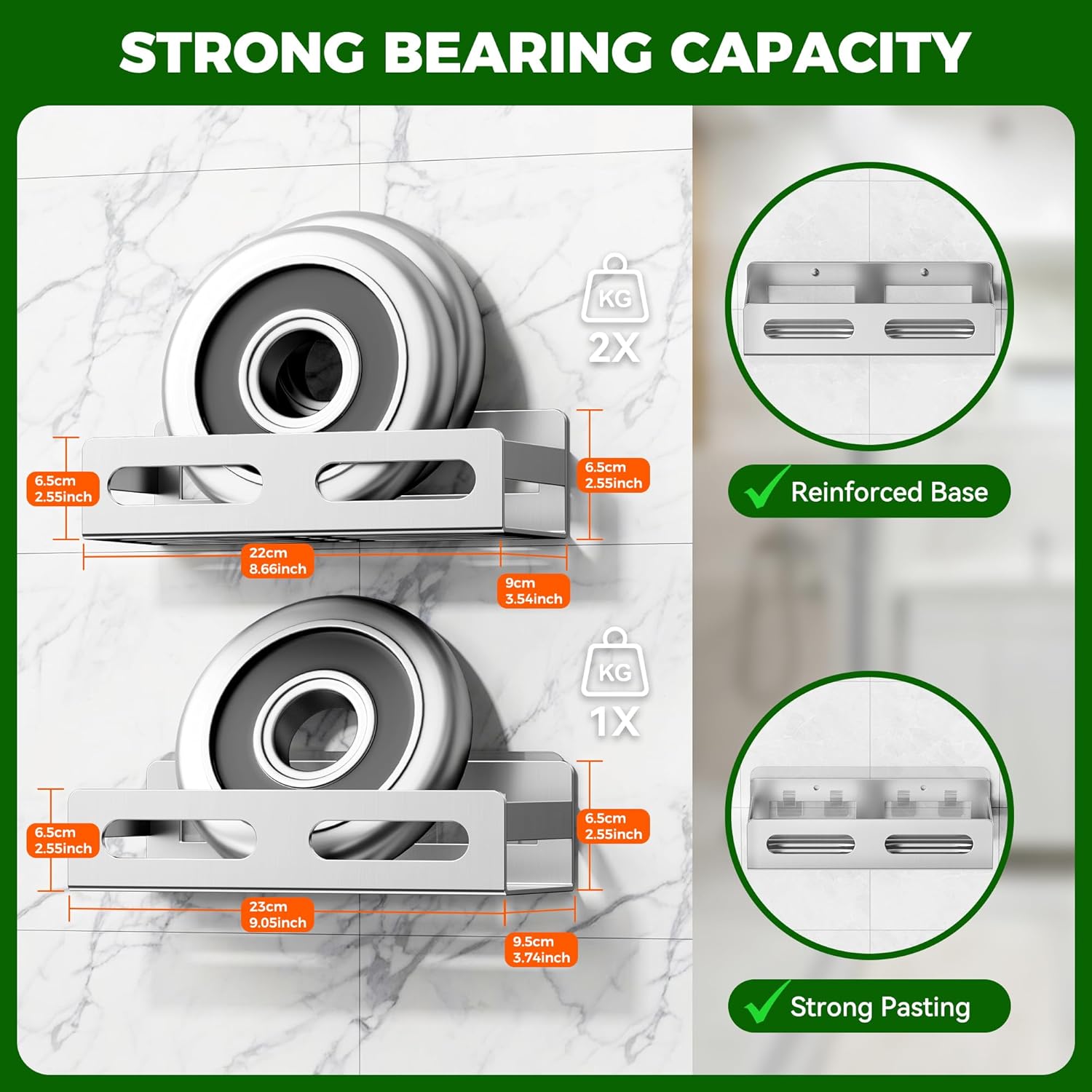- 【Easy to install-simple design】Stainless Steel Shower Caddy are made of innovative transparent nano-traceless strong multi-card adhesive stickers, which are more stable and will not leave traces after tearing off. Remove the protective film and stick it on smooth surfaces such as tiles and glass. It is convenient and fast, and adopts elegant and high-end design concepts and modern streamlined manufacturing processes. While decorating your space,make your environment more fashionable!