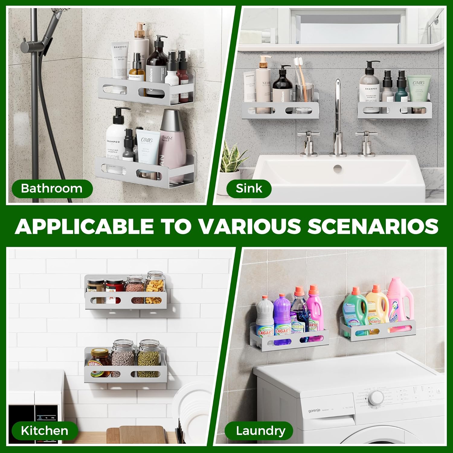 - 【Wide application scenarios】The shower organizer does not require drilling, has a simple design, suitable size, and a leak hole design. It does not require water storage. It is widely used in bathrooms, toilets, kitchens, living rooms, closets, kitchen cabinets, offices, basements, bedrooms, laundry rooms, family activity rooms, etc. Please note that the hook is suitable for flat and smooth surfaces without dust and water.