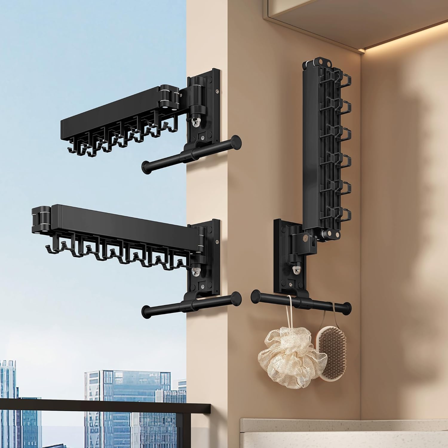 - Wall Mounted Collapsible Design – Space-Saving Drying Solution: This upgraded wall mounted clothes drying rack folds left, right, and even upward, maximizing your space. Perfect for balconies, laundry rooms, or small apartments where every inch counts.