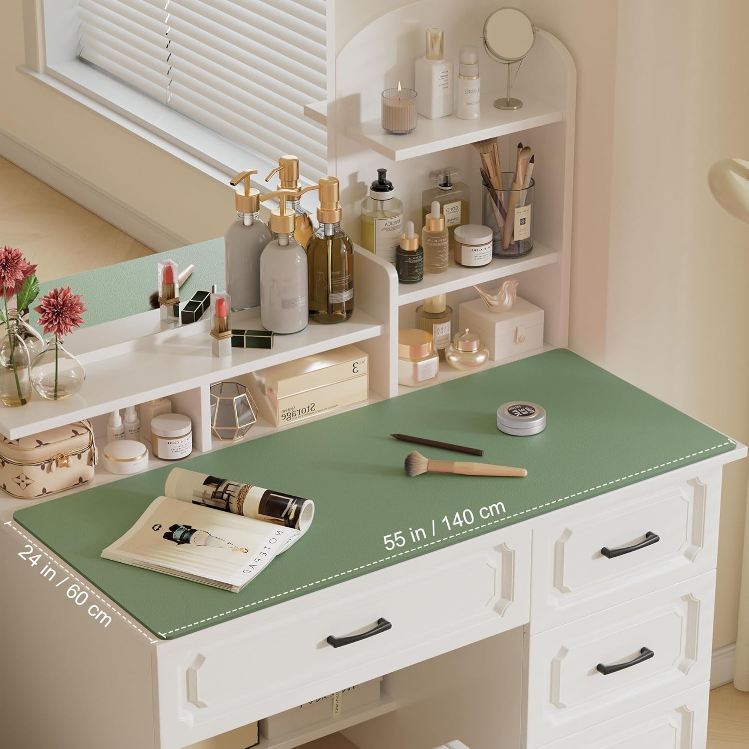 Aothia Leather Desk Pad Protector, Office Desk Mat, Large Mouse Pad, Laptop Desk Pad, Non-Slip PU Leather Desk Blotter, Waterproof Desk Writing Pad for Office and Home (Olive Green, 55" x 24")