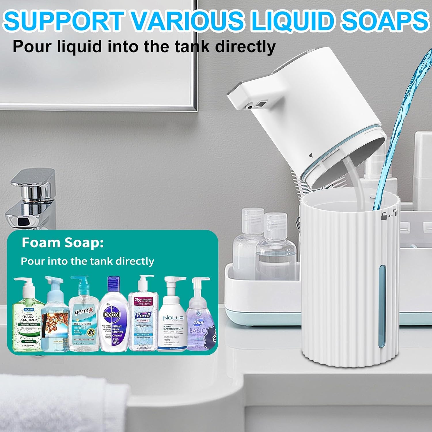 - 【4 Adjustable Dispensing Levels 】Easily adjust between 4 different soap output levels to suit your preference, whether you want a small amount for light washing or a larger dose for deep cleaning. This smart soap dispenser 400ml large capacity visible window design, reduces the need for frequent refills.
