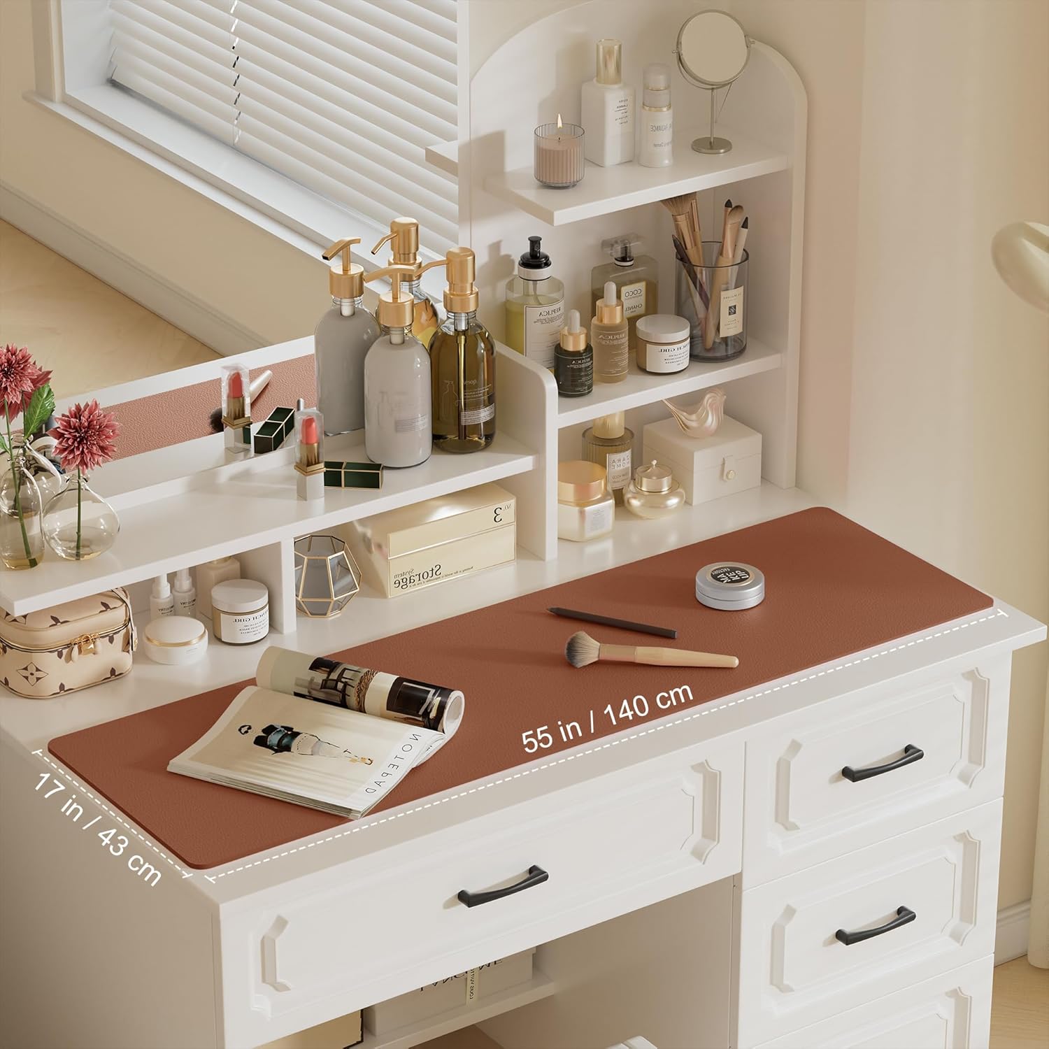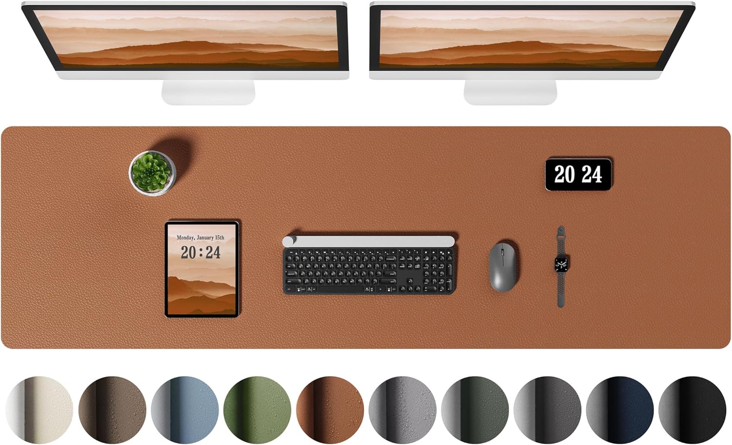 Aothia Leather Desk Pad Protector, Office Desk Mat, Large Mouse Pad, Laptop Desk Pad, Non-Slip PU Leather Desk Blotter, Waterproof Desk Writing Pad for Office and Home (Brown, 55" x 17")