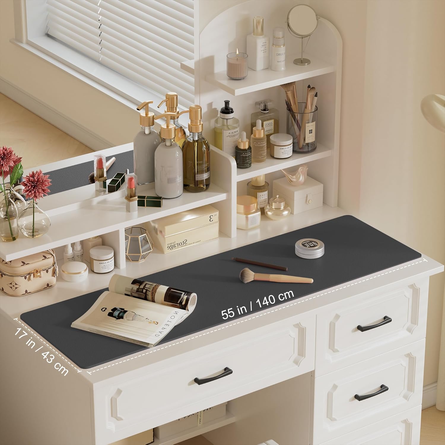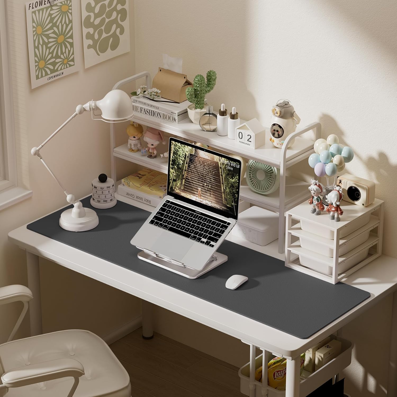 Aothia Leather Desk Pad Protector, Office Desk Mat, Large Mouse Pad, Laptop Desk Pad, Non-Slip PU Leather Desk Blotter, Waterproof Desk Writing Pad for Office and Home (Grey, 55" x 17")