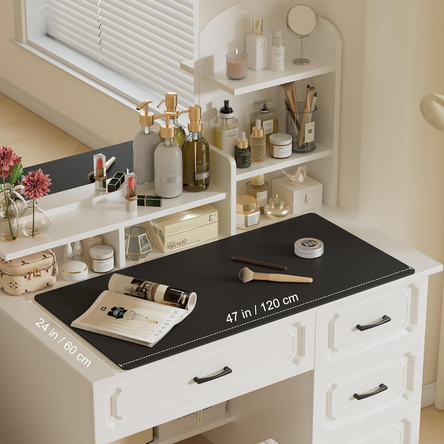 Aothia Leather Desk Pad Protector, Office Desk Mat, Large Mouse Pad, Laptop Desk Pad, Non-Slip PU Leather Desk Blotter, Waterproof Desk Writing Pad for Office and Home (Black, 47" x 24")