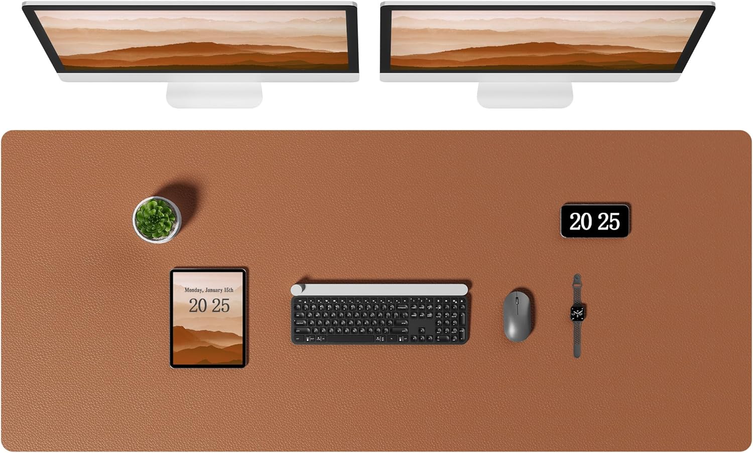 Aothia Leather Desk Pad Protector, Office Desk Mat, Large Mouse Pad, Laptop Desk Pad, Non-Slip PU Leather Desk Blotter, Waterproof Desk Writing Pad for Office and Home (Brown, 55" x 24")
