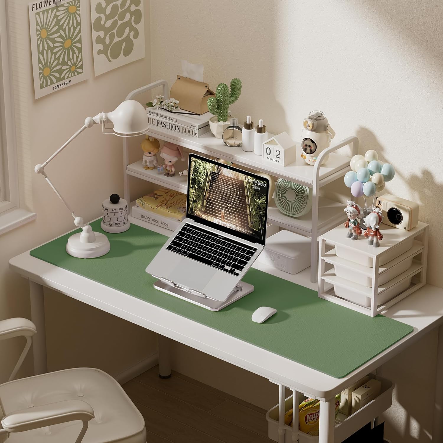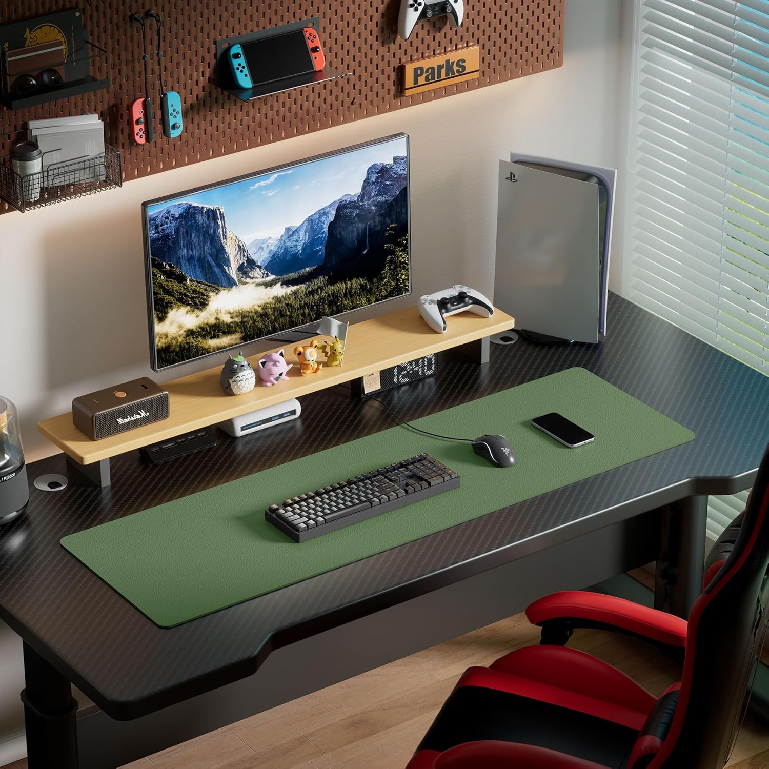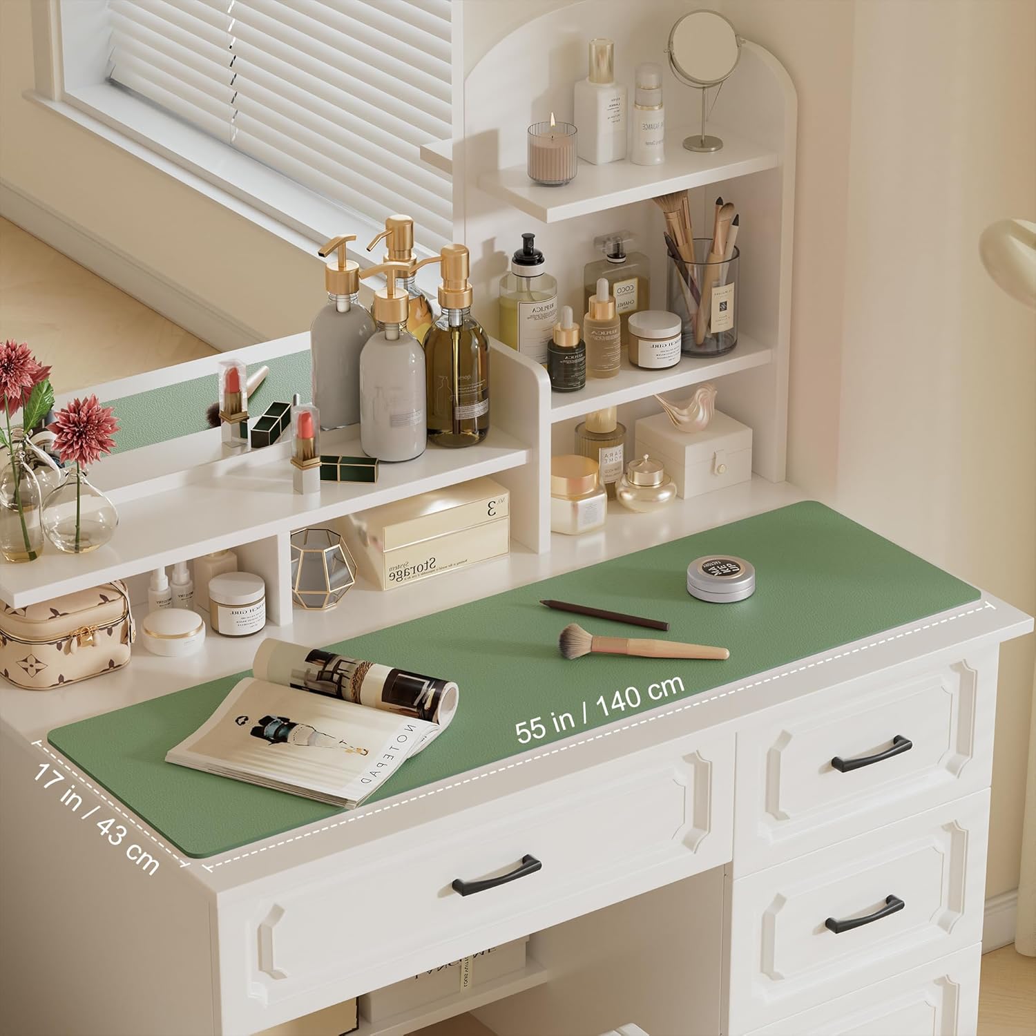 Aothia Leather Desk Pad Protector, Office Desk Mat, Large Mouse Pad, Laptop Desk Pad, Non-Slip PU Leather Desk Blotter, Waterproof Desk Writing Pad for Office and Home (Olive Green, 55" x 17")