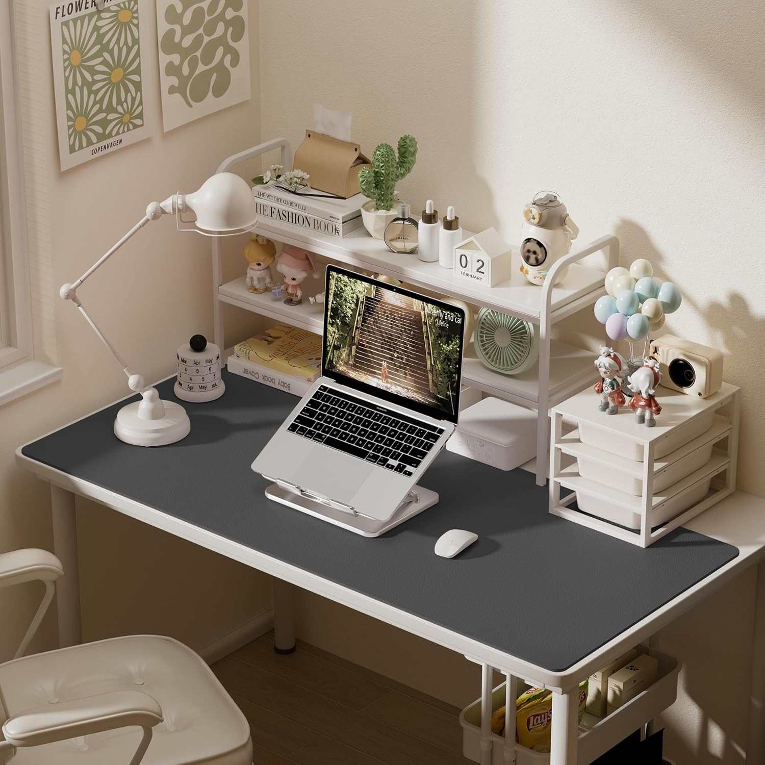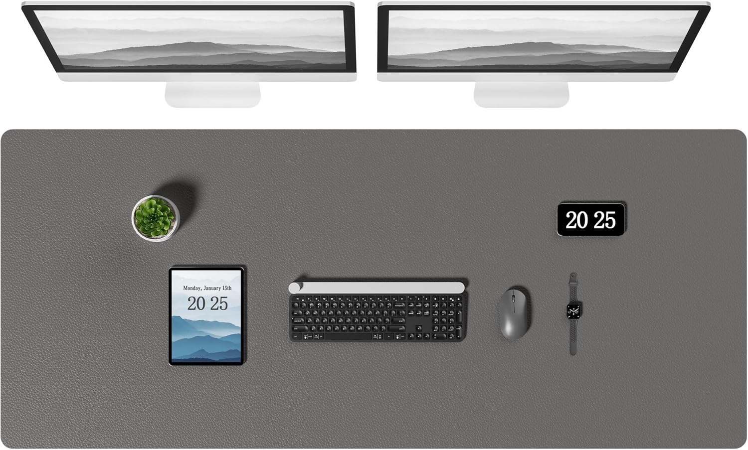 Aothia Leather Desk Pad Protector, Office Desk Mat, Large Mouse Pad, Laptop Desk Pad, Non-Slip PU Leather Desk Blotter, Waterproof Desk Writing Pad for Office and Home (Gray, 55" x 24")