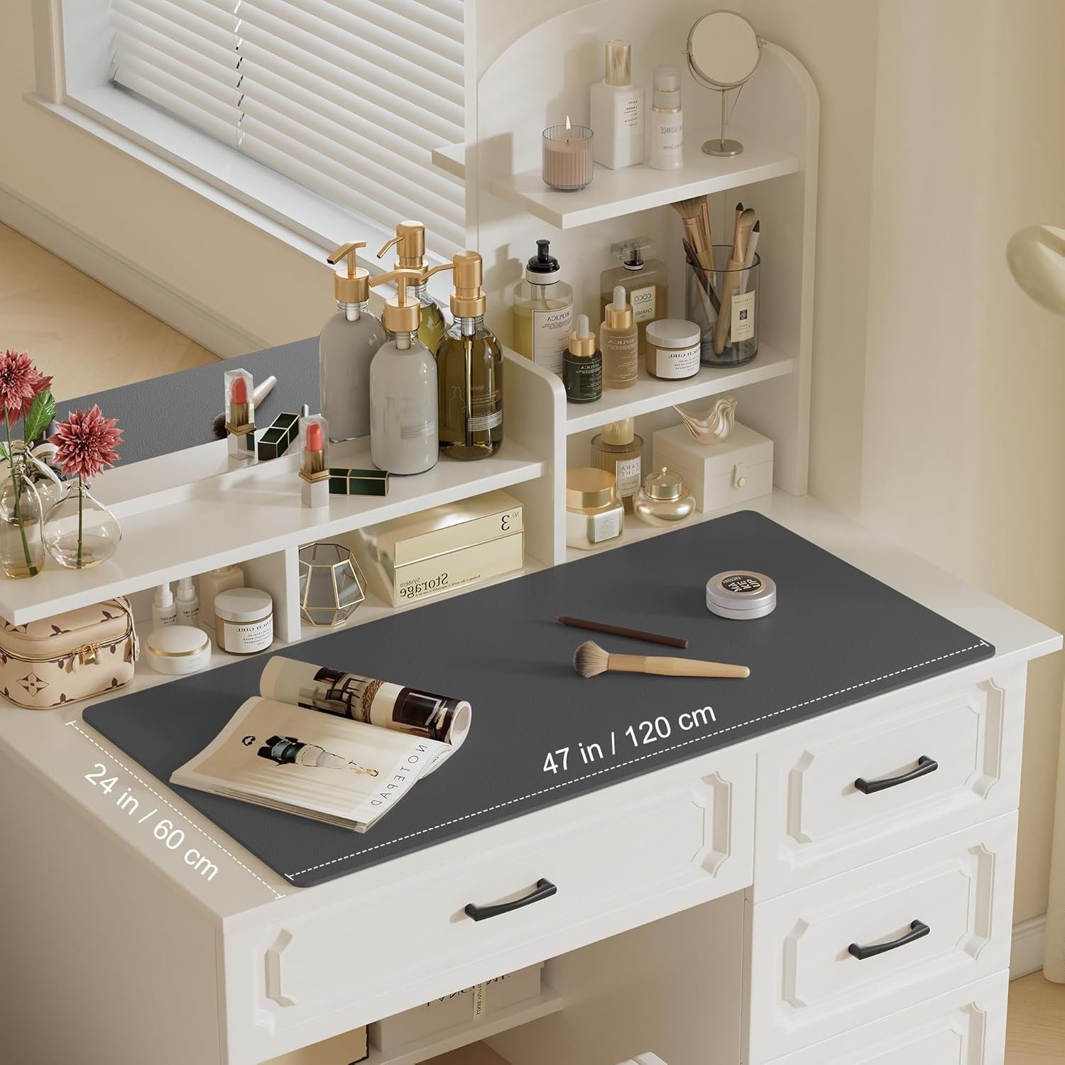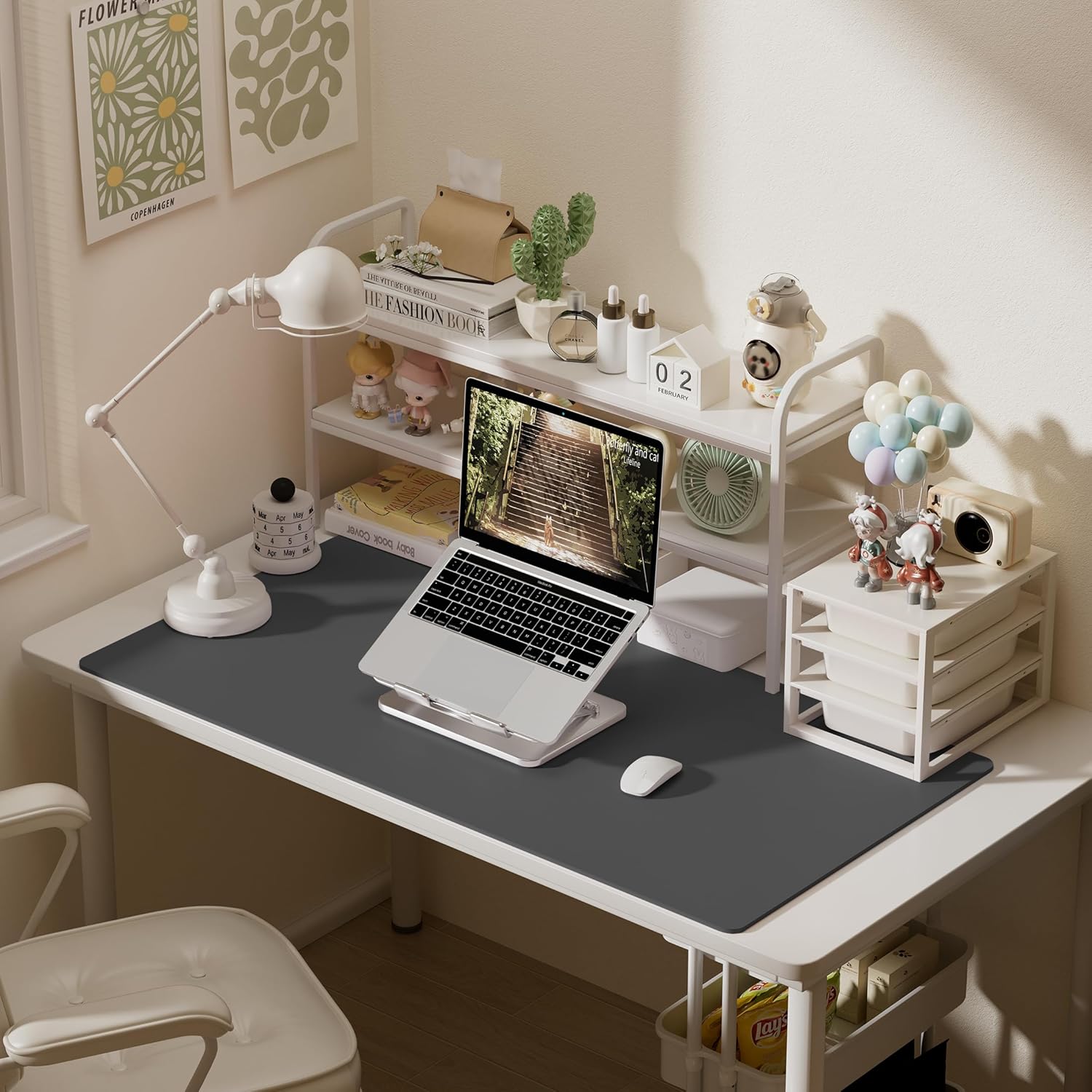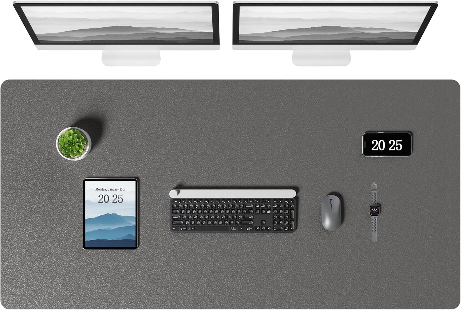 Aothia Leather Desk Pad Protector, Office Desk Mat, Large Mouse Pad, Laptop Desk Pad, Non-Slip PU Leather Desk Blotter, Waterproof Desk Writing Pad for Office and Home (Gray, 47" x 24")