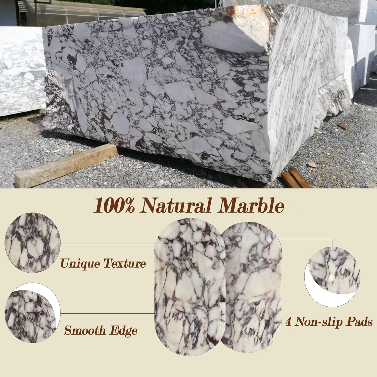 100% Real Natural Marble Tray for Bathroom, Luxury Calacatta Viola Stone Vanity Tray, Decorative Oval Trays for Countertop Storage Organizer, Dresser, Kitchen, Home Decor, 11.8" x 6", Purple