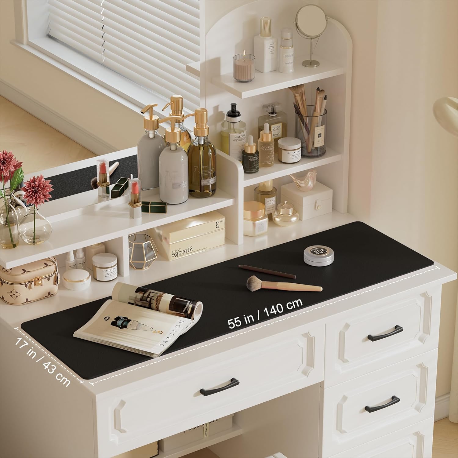 Aothia Leather Desk Pad Protector, Office Desk Mat, Large Mouse Pad, Laptop Desk Pad, Non-Slip PU Leather Desk Blotter, Waterproof Desk Writing Pad for Office and Home (Black, 55" x 17")