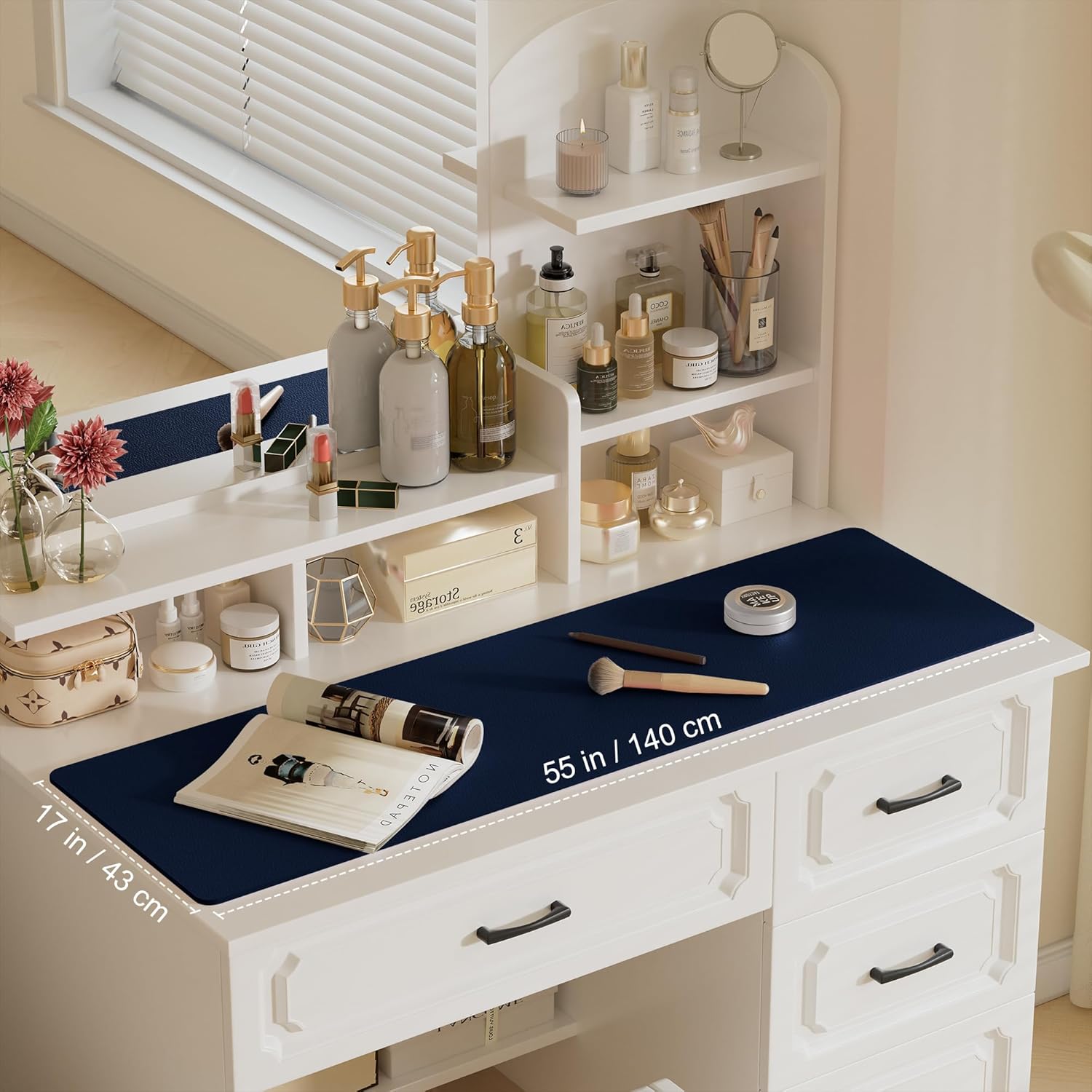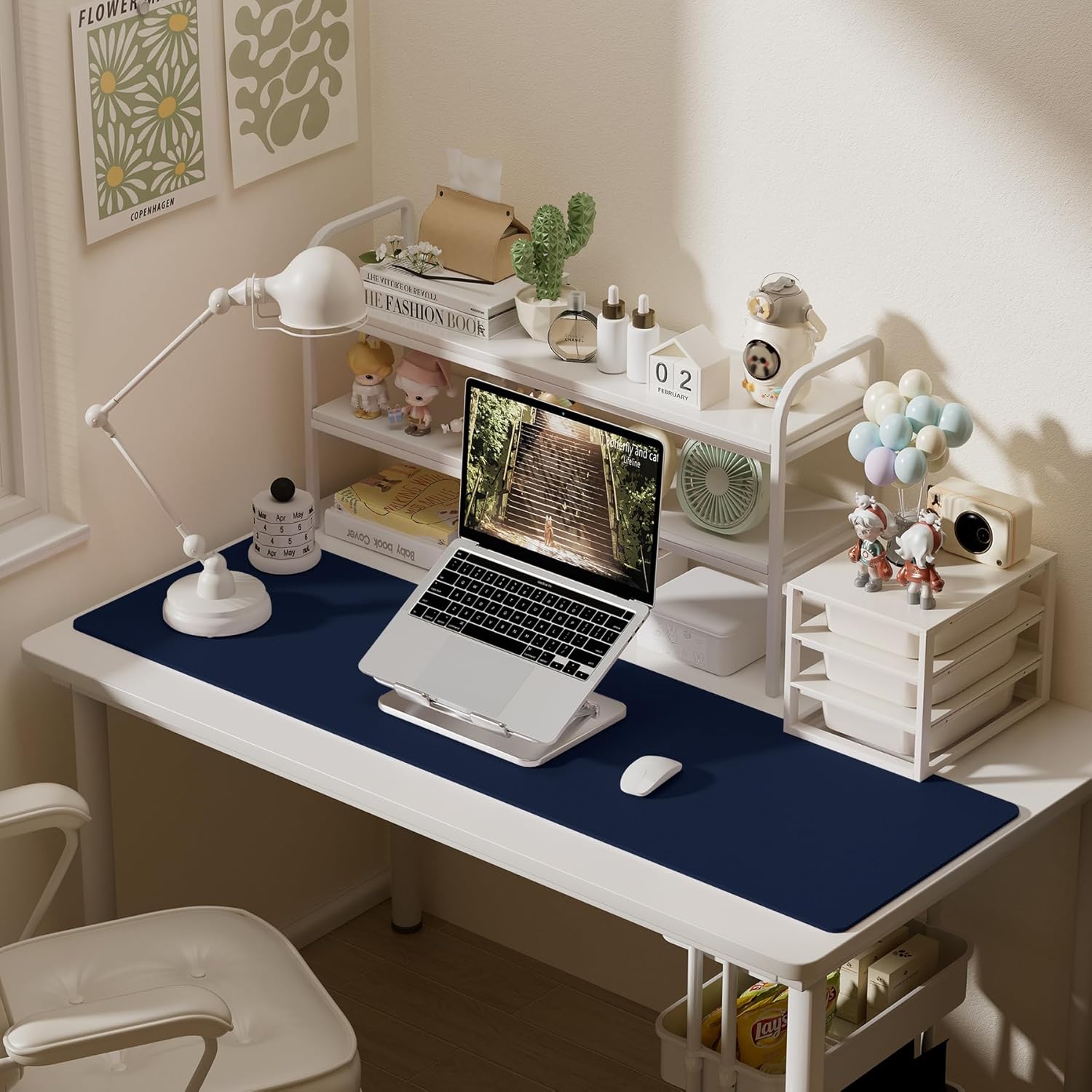Aothia Leather Desk Pad Protector, Office Desk Mat, Large Mouse Pad, Laptop Desk Pad, Non-Slip PU Leather Desk Blotter, Waterproof Desk Writing Pad for Office and Home (Dark Blue, 55" x 17")