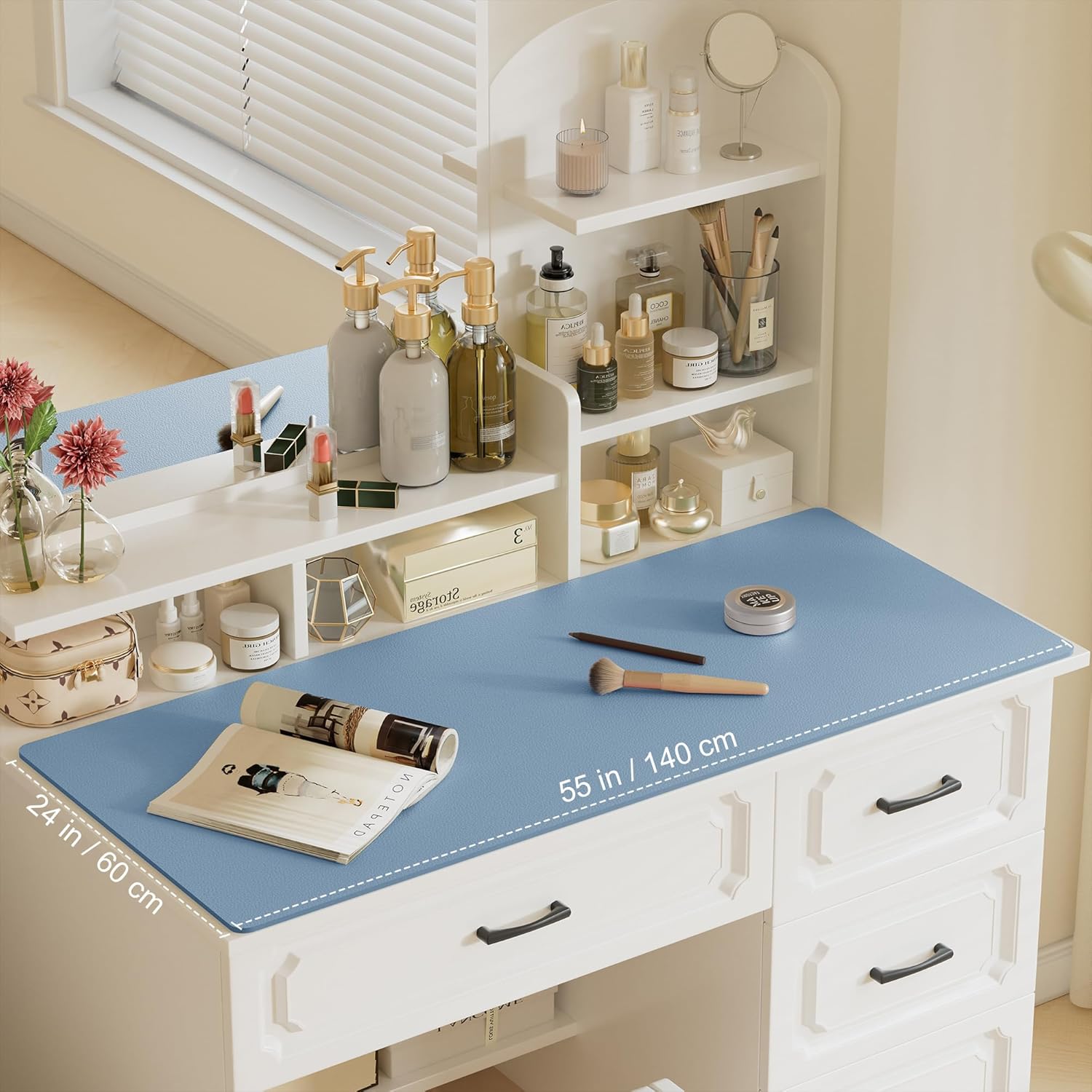 Aothia Leather Desk Pad Protector, Office Desk Mat, Large Mouse Pad, Laptop Desk Pad, Non-Slip PU Leather Desk Blotter, Waterproof Desk Writing Pad for Office and Home (Denim Blue, 55" x 24")