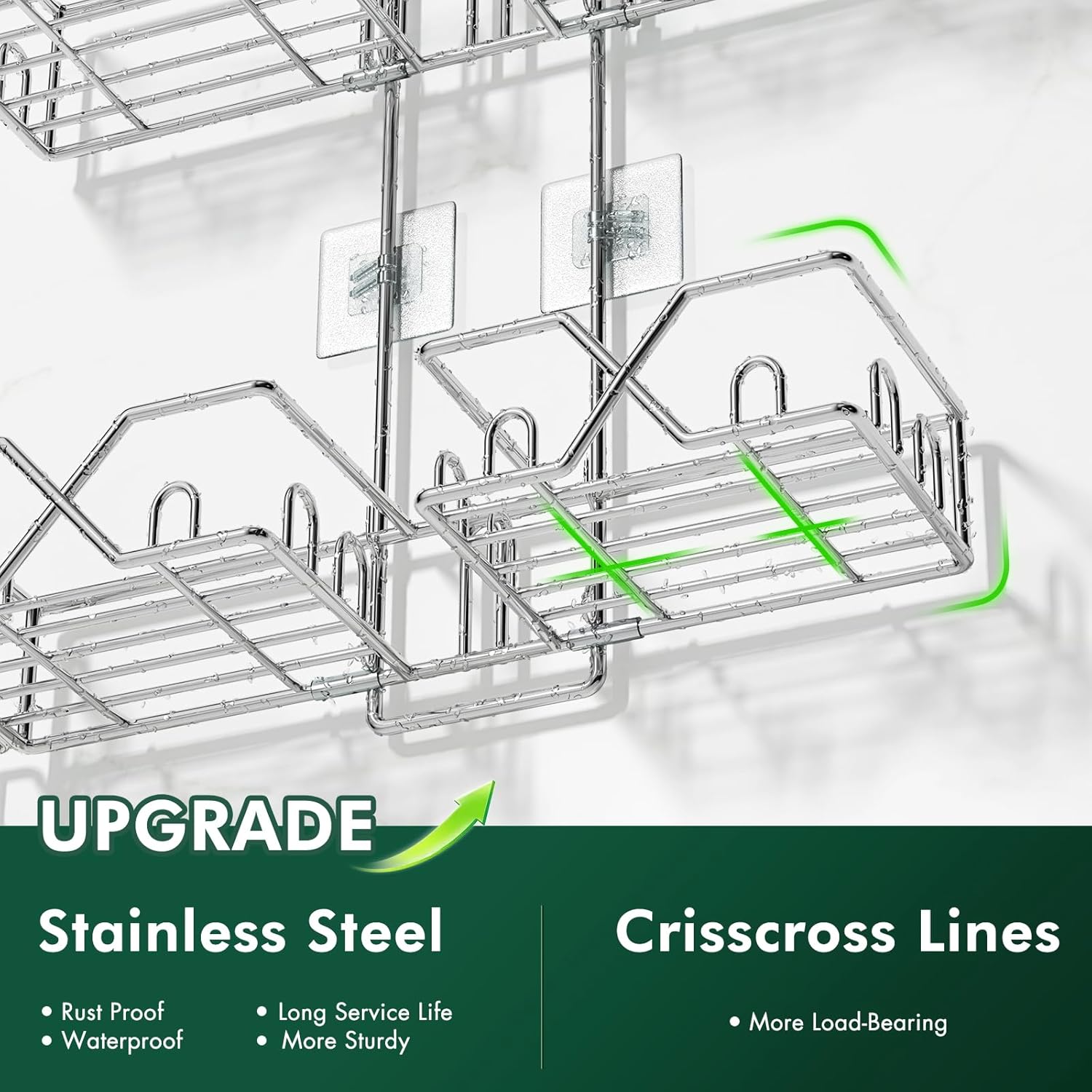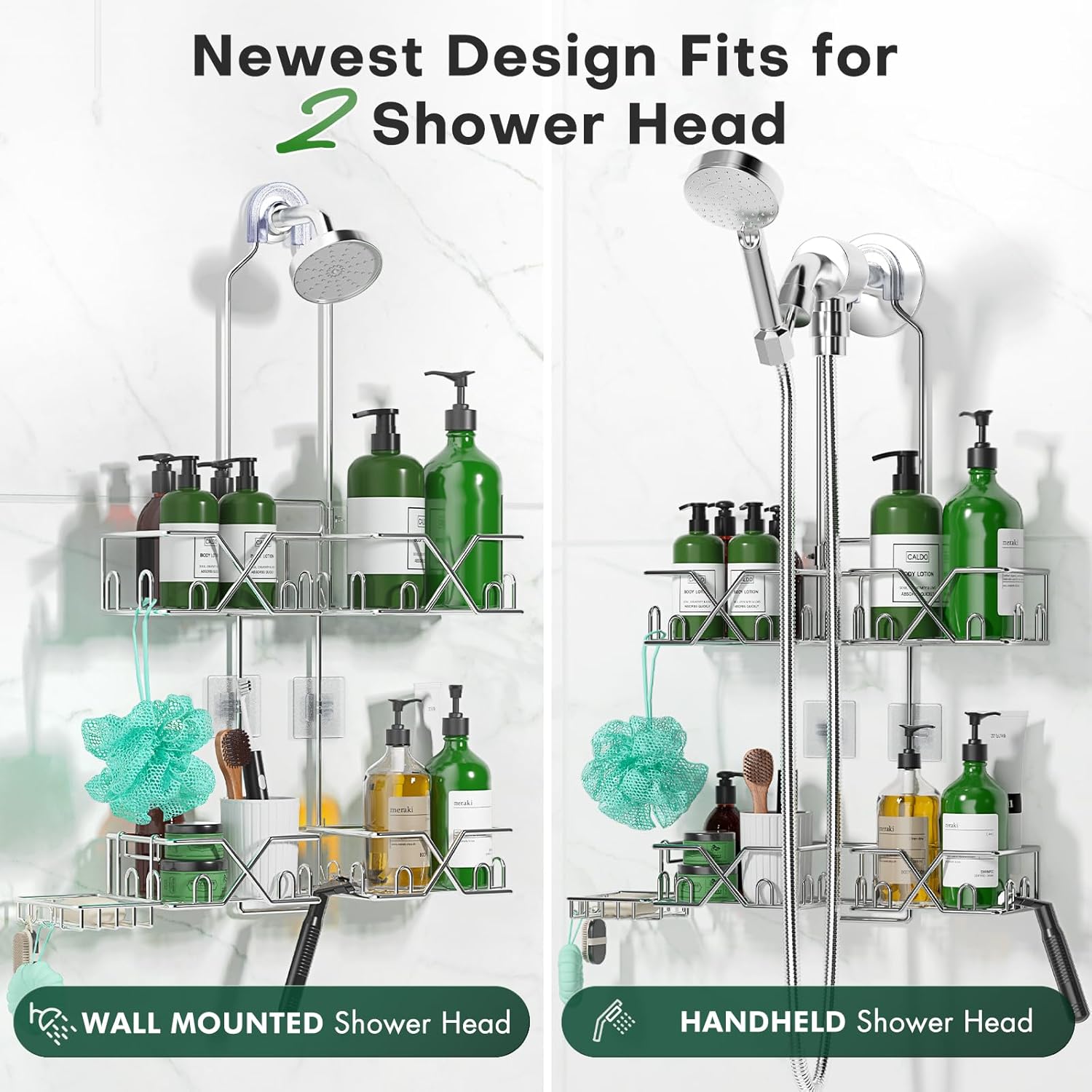 - [Safety and Anti-Slip Design] - The top of shower caddies over showerhead equipped a rubber ring for anti-slip stability when mounted on the showerhead. Furthermore,2 strong adhescive sticker ensure bathroom caddy for shower is securely fixed in place,even when loaded large capacity items,it won't shake or fall off,providing a safe and reliable storage solution.