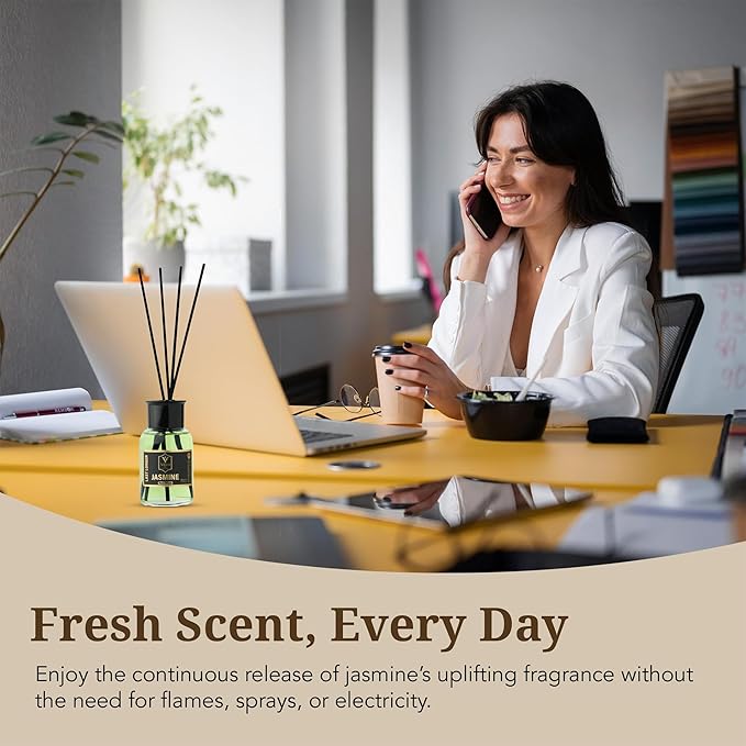 - ✅Long-Lasting Home Fragrance – Enjoy a continuous, consistent scent with our reed diffuser set. Perfect for bathroom, bedroom, or office, this oil diffuser with sticks keeps your space fresh for weeks.