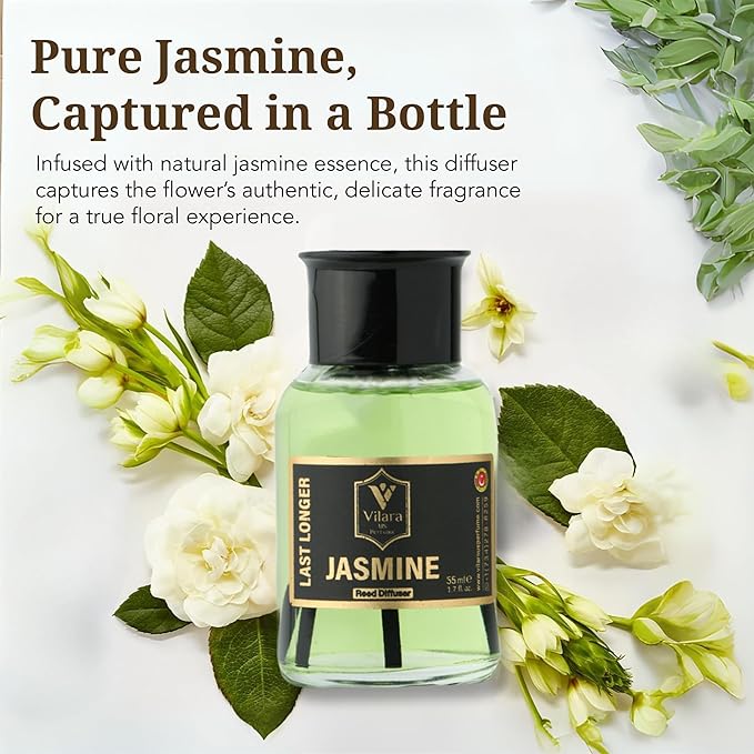 Reed Diffuser Set with Sticks for Home – Bathroom, Bedroom & Office Aromatherapy – Long Lasting Scented Oil Diffuser with Sticks – Luxury Room Fragrance Diffuser 55ml,1.7 fl oz (Jasmine)