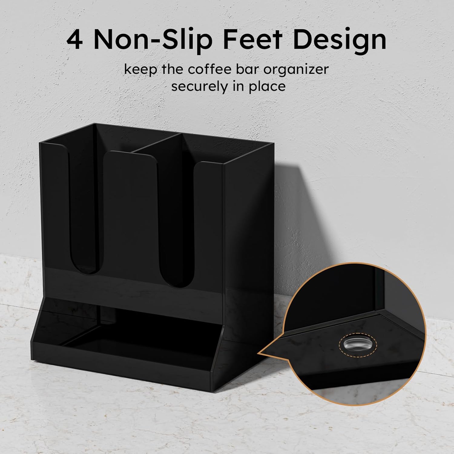 - Weighted & Non-Slip Base - Tired of wobbly organizers? Our acrylic coffee station organizer features a weighted base and non-slip pads that grip your countertop, keeping it perfectly stable even when you spin it or grab items in a hurry. No more tips or spills!