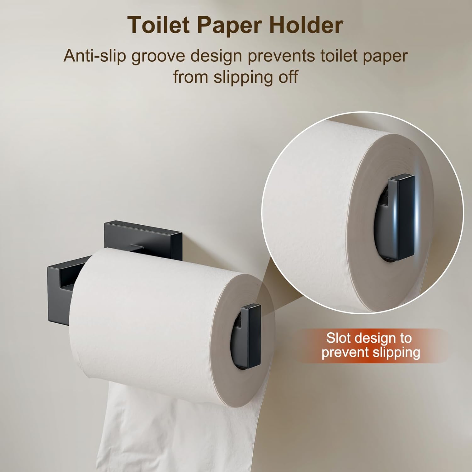 10 Pcs SUS304 Stainless Steel Bathroom Accessories Set, 23.6" Towel Bar, Toilet Paper Holder, Rectangular Towel Ring, Towel Hooks, Minimalist Design for All Styles Bathrooms (Matte Black)