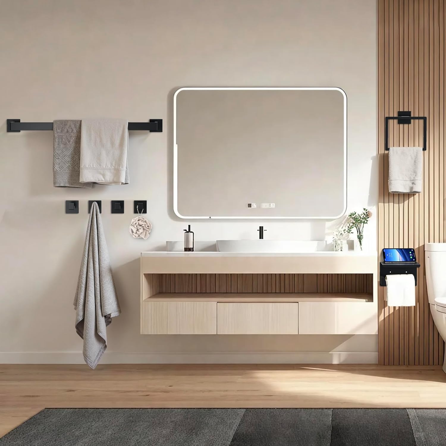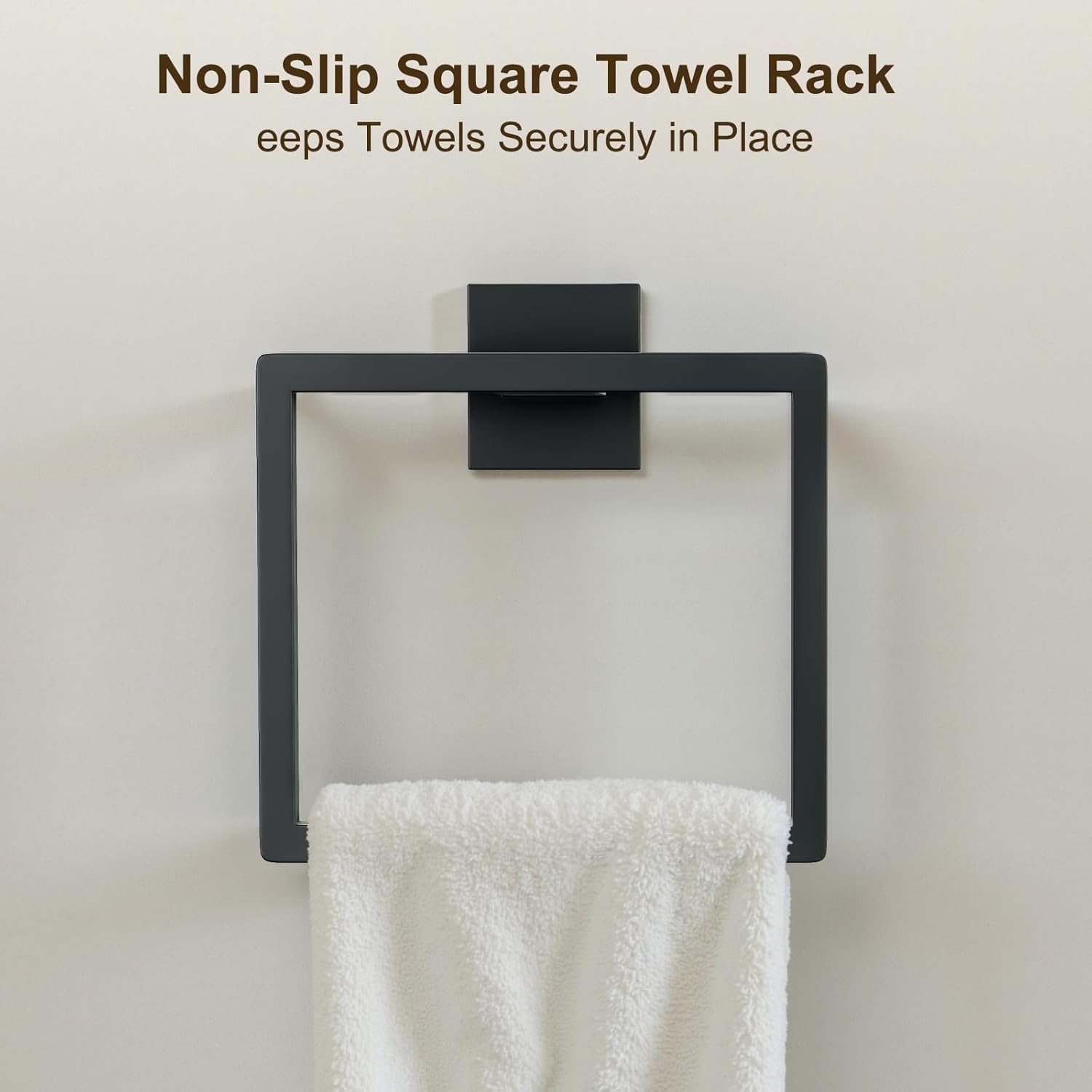 - 【10-Piece Bathroom Accessories Set】Includes 2 x 24" towel bars, 2 x rectangular towel rings, 4 x towel hooks, and 2 x toilet paper holders. This all-in-one solution meets all your bathroom accessory needs. Maximize your bathroom space with clutter-free organization.