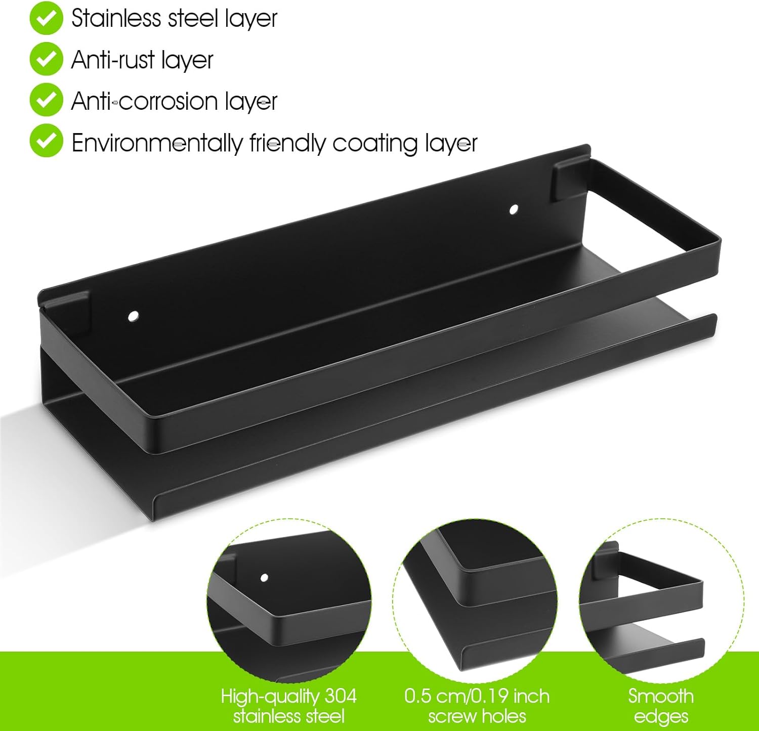 - 【Versatile】stainless steel wall shelf is widely applied for bathroom,black bathroom shelf toilet, kitchen, bedroom, to store shampoo, shower gel, facial cleanser, essential oil, seasoning bottles, bottles, and so on, to keep your items in place and in order,shower shampoo holder
